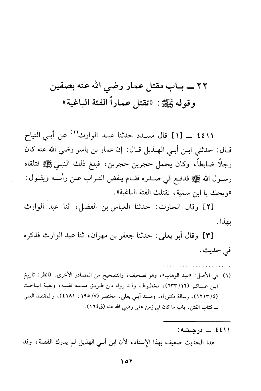 22 - بَابُ مَقْتَلِ عَمَّارٍ رَضِيَ الله عَنْه بِصِفِّينَ وَقَوْلُهُ صَلَّى اللَّهُ عَلَيْهِ وَسَلَّمَ: " تَقْتُلُ عَمَّارًا الْفِئَةُ الْبَاغِيَةُ "