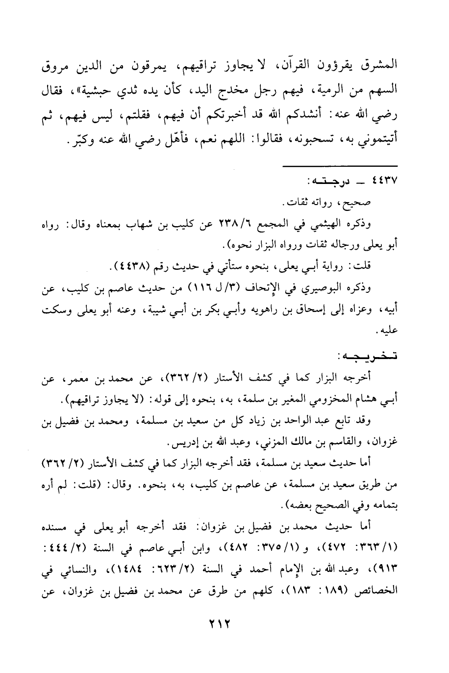 وذكره الهيثمي في المجمع 6/ 238 عن كليب بن شهاب بمعناه وقال: رواه أبو يعلى ورجاله ثقات ورواه البزّار نحوه).