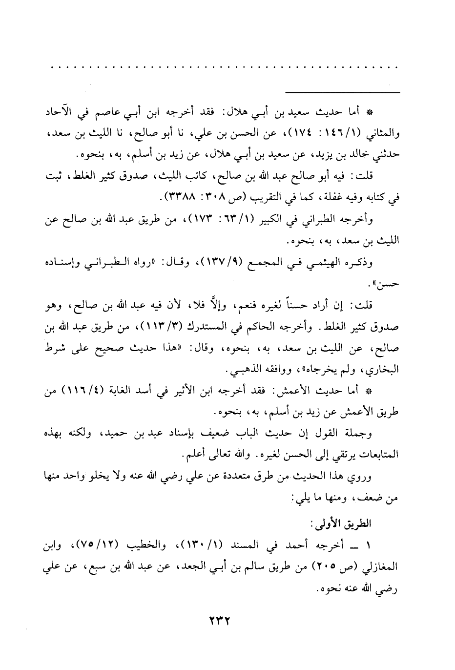 = * أما حديث سعيد بن أبي هلال: فقد أخرجه ابن أبي عاصم في الآحاد والمثاني (1/ 146: 174)، عن الحسن بن علي، نا أبو صالح، نا الليث بن سعد، حدَّثني خَالِدِ بْنِ يَزِيدَ، عَنْ سَعِيدِ بْنِ أَبِي هلال، عن زيد بن أسلم، به، بنحوه.