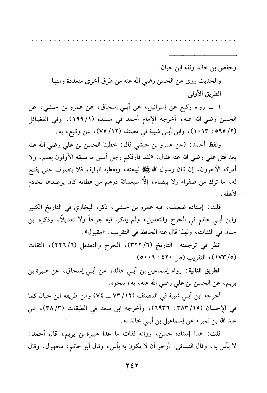 1 - رواه وكيع عن إِسْرَائِيلُ، عَنْ أَبِي إِسْحَاقَ، عَنْ عَمْرِو بْنِ حبشي، عن الحسن رضي الله عنه، أخرجه الإِمام أحمد في مسنده (1/ 199)، وفي الفضائل (2/ 595: 1513)، وابن أبي شيبة في مصنفه (12/ 75)، عن وكيع، به.