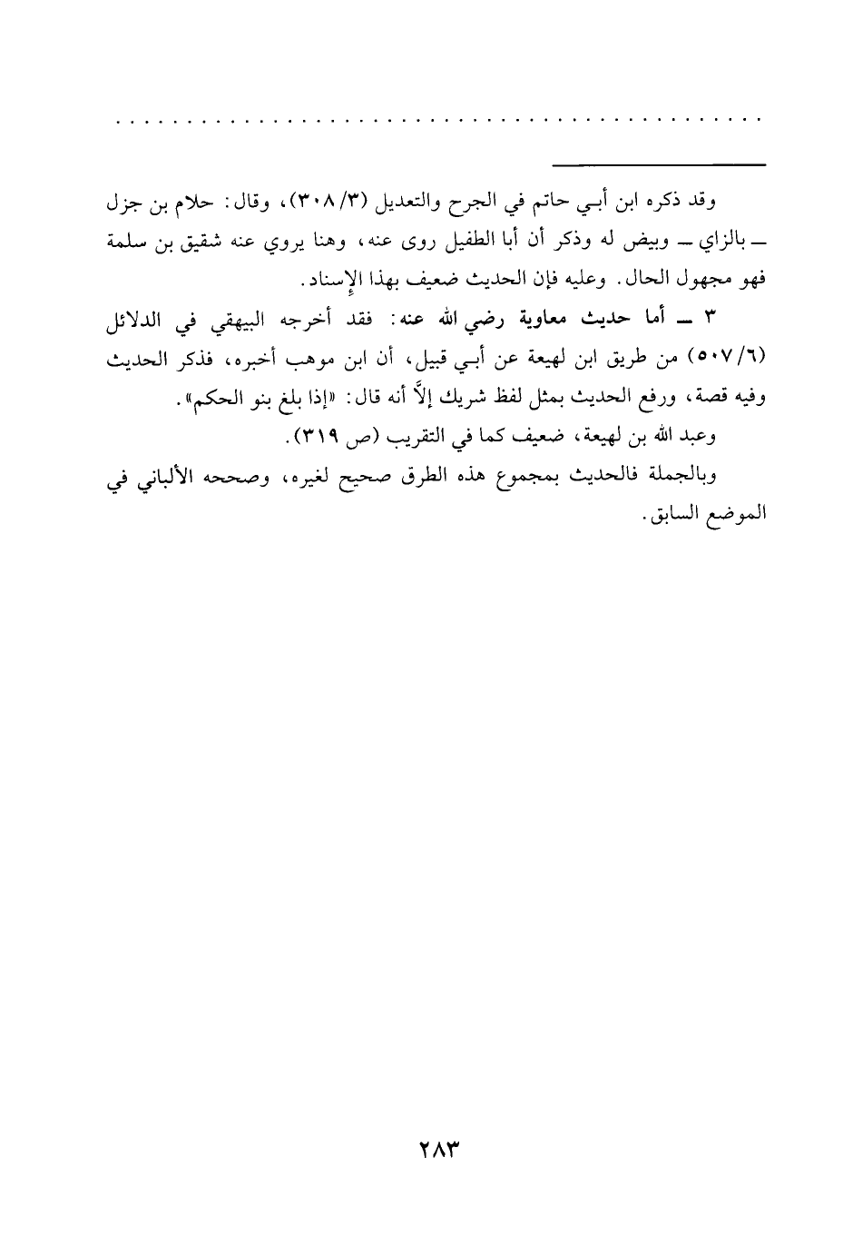 = وقد ذكره ابن أبي حاتم في الجرح والتعديل (3/ 308)، وقال: حلام بن جزل -بالزاي- وبيض له وذكر أن أبا الطفيل روى عنه، وهنا يروي عنه شقيق بن سلمة فهو مجهول الحال. وعليه فإن الحديث ضعيف بهذا الإِسناد.