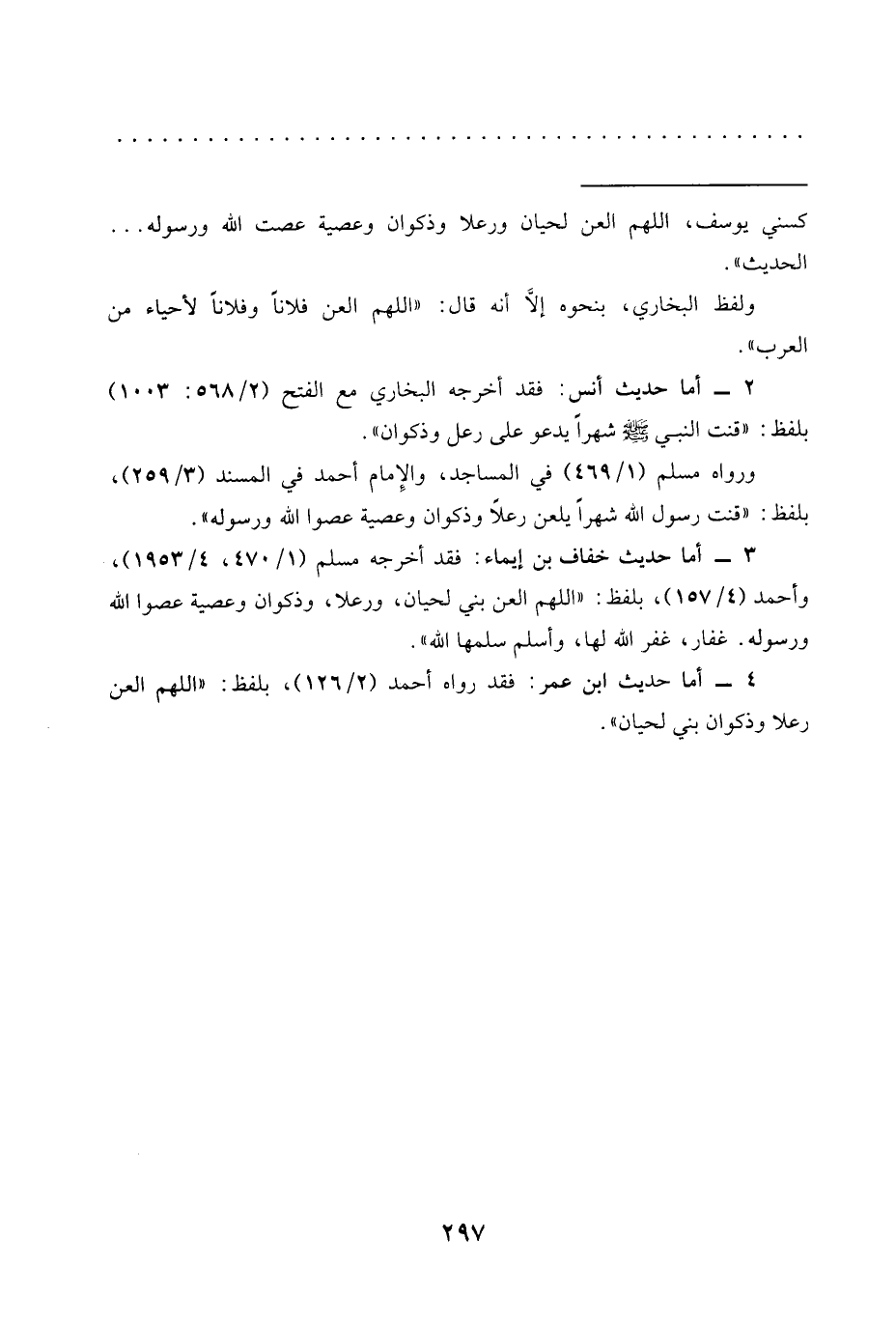 4 - أما حديث ابن عمر: فقد رواه أحمد (2/ 126)، بلفظ: "اللهم العن رعلا وذكوان بني لحيان".