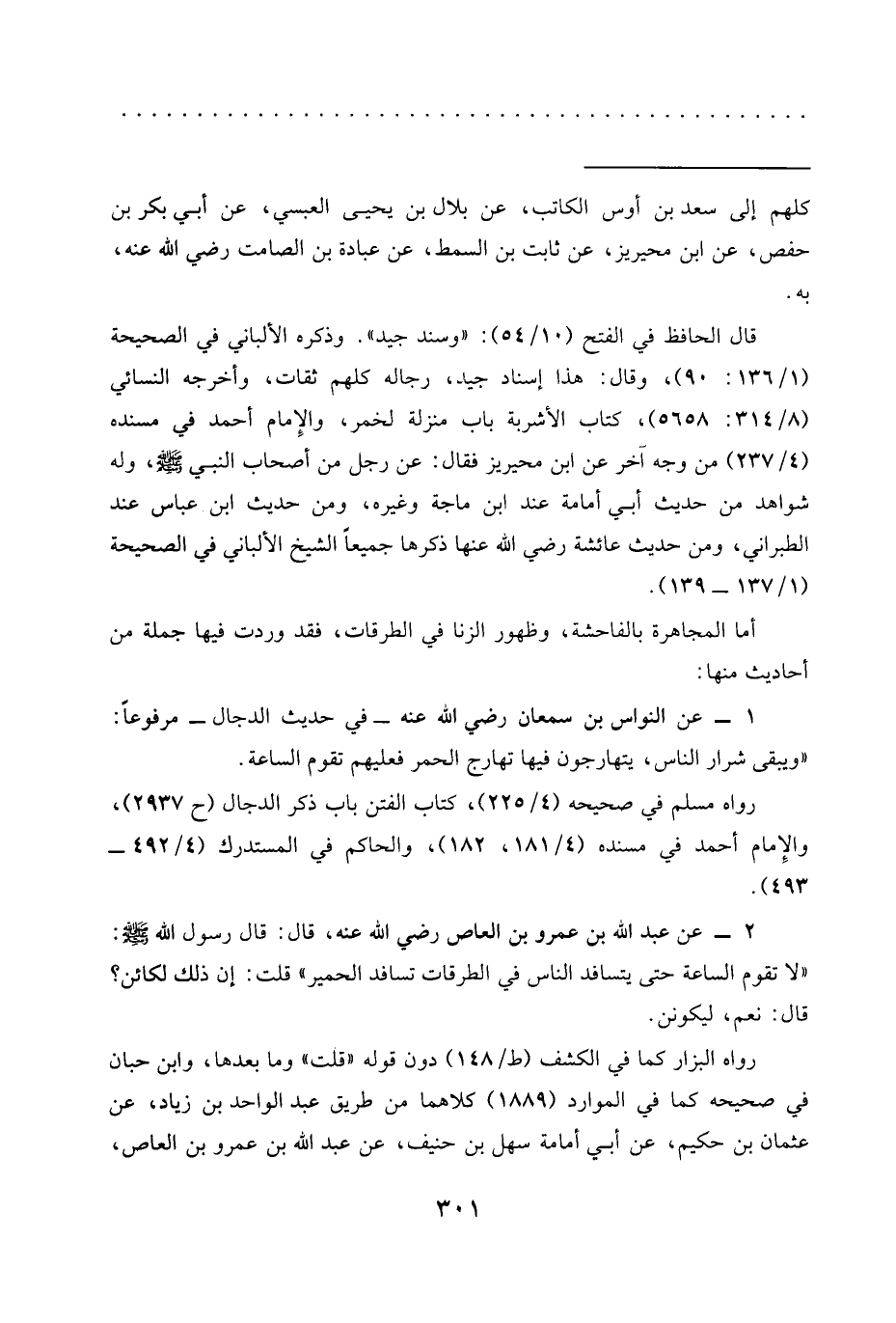 = كلهم إلى سعد بن أوس الكاتب، عن بلال بن يحيى العبسي، عَنْ أَبِي بَكْرِ بْنِ حَفْصٍ، عَنِ ابْنِ محيريز، عن ثابت بن السمط، عن عبادة بن الصامت رضي الله عنه، به.