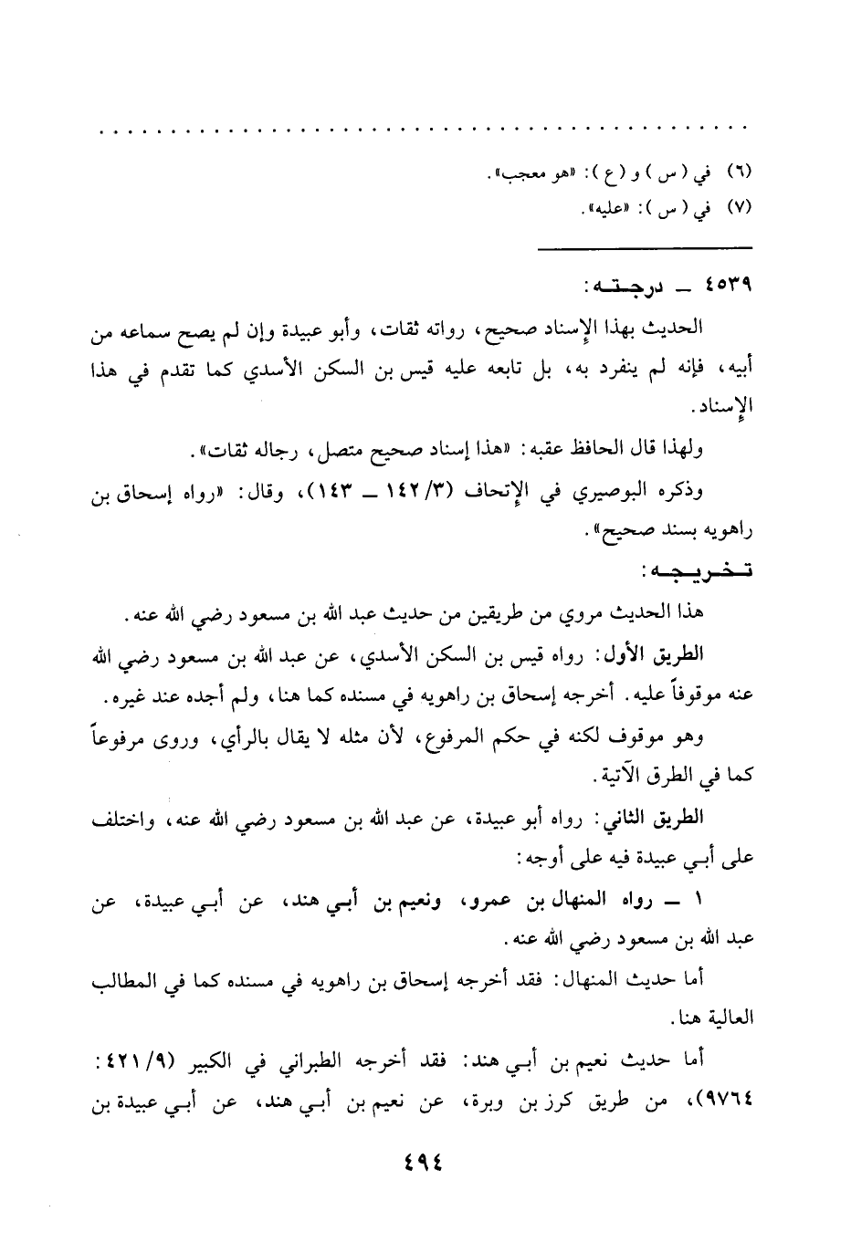 وذكره البوصيري في الإِتحاف (3/ 142 - 143)، وقال: "رواه إسحاق بن راهويه بسند صحيح".