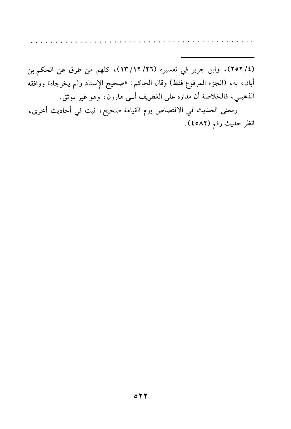 = (252/ 4)، وابن جرير في تفسيره (26/ 12/ 13)، كلهم من طرق عن الحكم بن أبان، به، (الجزء المرفوع فقط) وقال الحاكم: "صحيح الإِسناد ولم يخرجاه" ووافقه الذهبي، فالخلاصة أن مداره على الغطريف أبي هارون، وهو غير موثق.