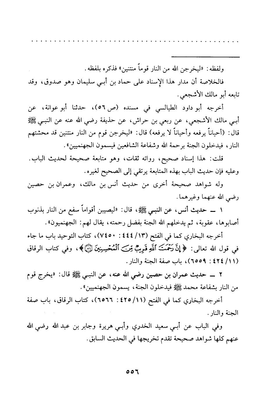 2 - حَدِيثِ عِمْرَانَ بْنِ حُصَيْنٍ رَضِيَ اللَّهُ عَنْهُ، عَنِ النَّبِيِّ -صَلَّى اللَّهُ عَلَيْهِ وَسَلَّمَ- قَالَ: "يخرج قوم من النار بشفاعة محمَّد -صلى الله عليه وسلم- فيدخلون الجنة، يسمون الجهنميين".