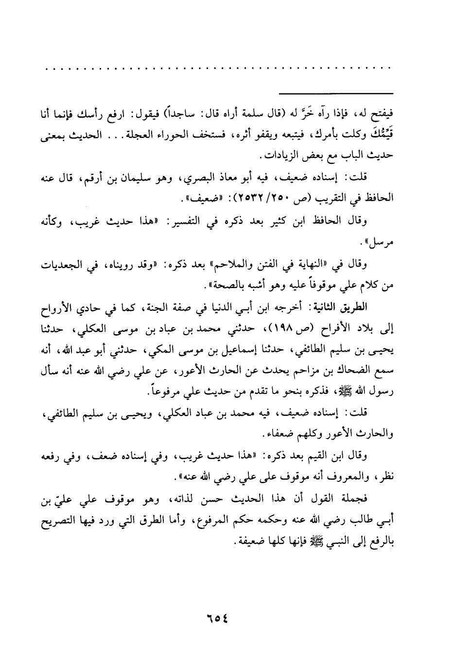 وقال ابن القيم بعد ذكره: "هذا حديث غريب، وفي إسناده ضعف، وفي رفعه نظر، والمعروف أنه موقوف على علي رضي الله عنه".