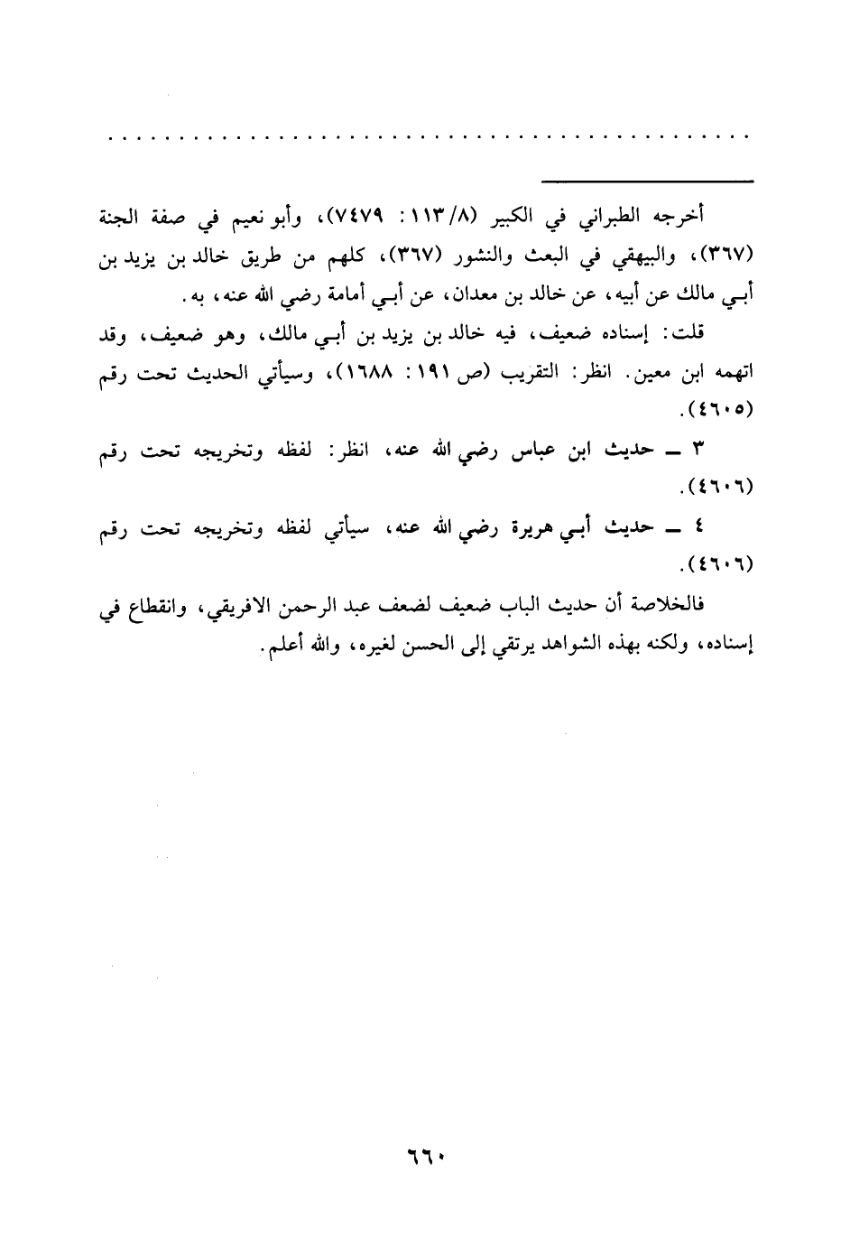 = أخرجه الطبراني في الكبير (8/ 113: 7479)، وأبو نعيم في صفة الجنة (367)، والبيهقي في البعث والنشور (367)، كلهم من طريق خالد بن يزيد بْنُ أَبِي مَالِكٍ عَنْ أَبِيهِ، عَنْ خَالِدِ بن معدان، عن أبي أمامة رضي الله عنه، به.