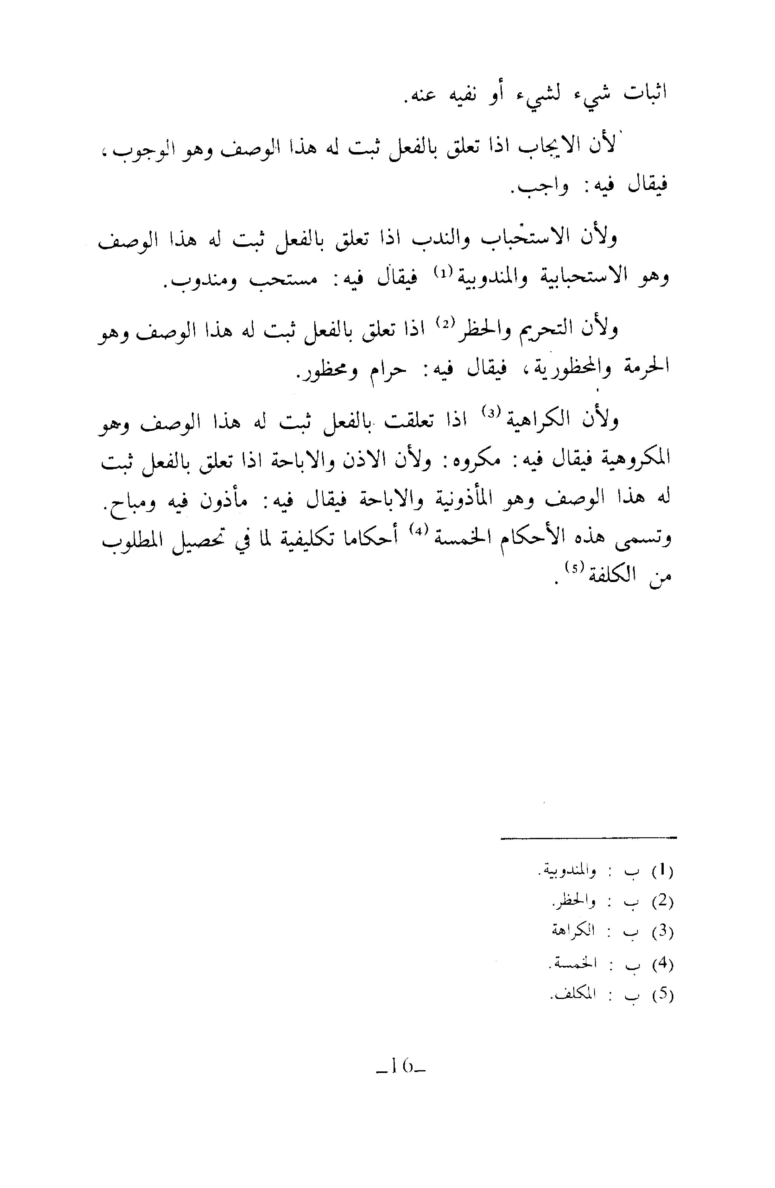 وَتُسَمَّى هَذِهِ الْأَحْكَامُ الْخَمْسَةِ (4) أَحْكَامًا تَكْلِيفِيَّةً لِمَا فِي تَحْصِيلِ الْمَطْلُوبِ مِنَ الْكُلْفَةِ (5).