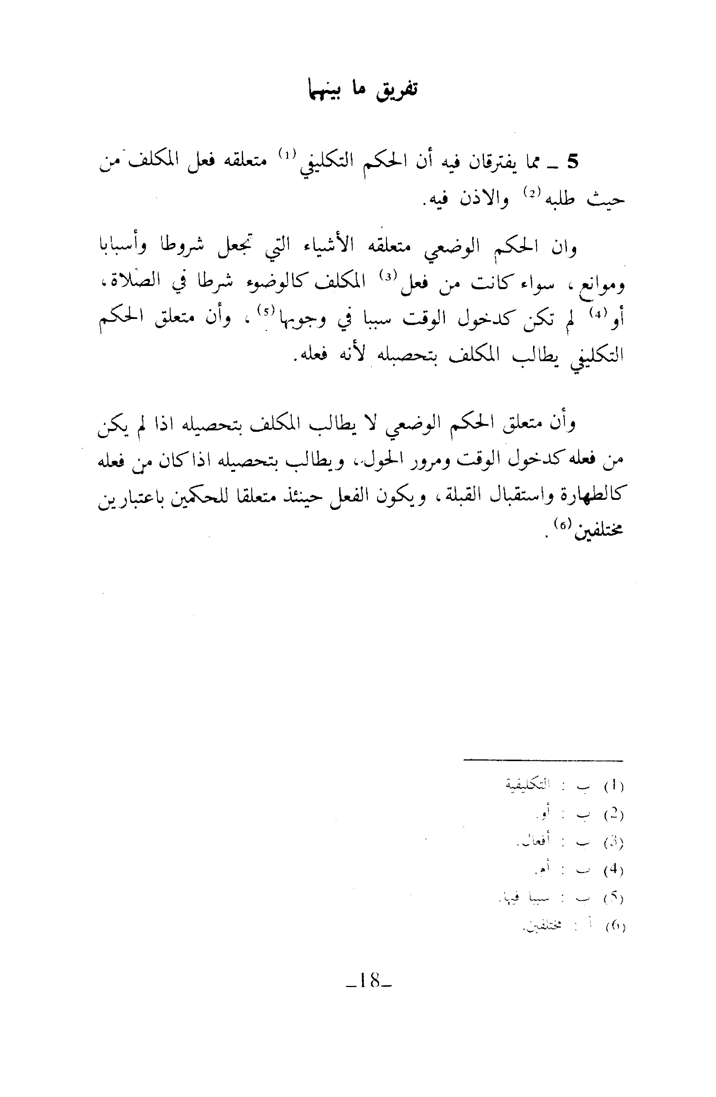 5 - مِمَّا يَفْتَرِقَانِ فِيهِ أَنَّ الْحُكْمَ التَّكْلِيفِيَّ (¬1) مُتَعَلِّقُهُ فِعْلَ الْمُكَلَّفِ مِنْ حَيْثُ طَلَبِهِ (¬2) وَالْإِذْنِ فِيهِ.