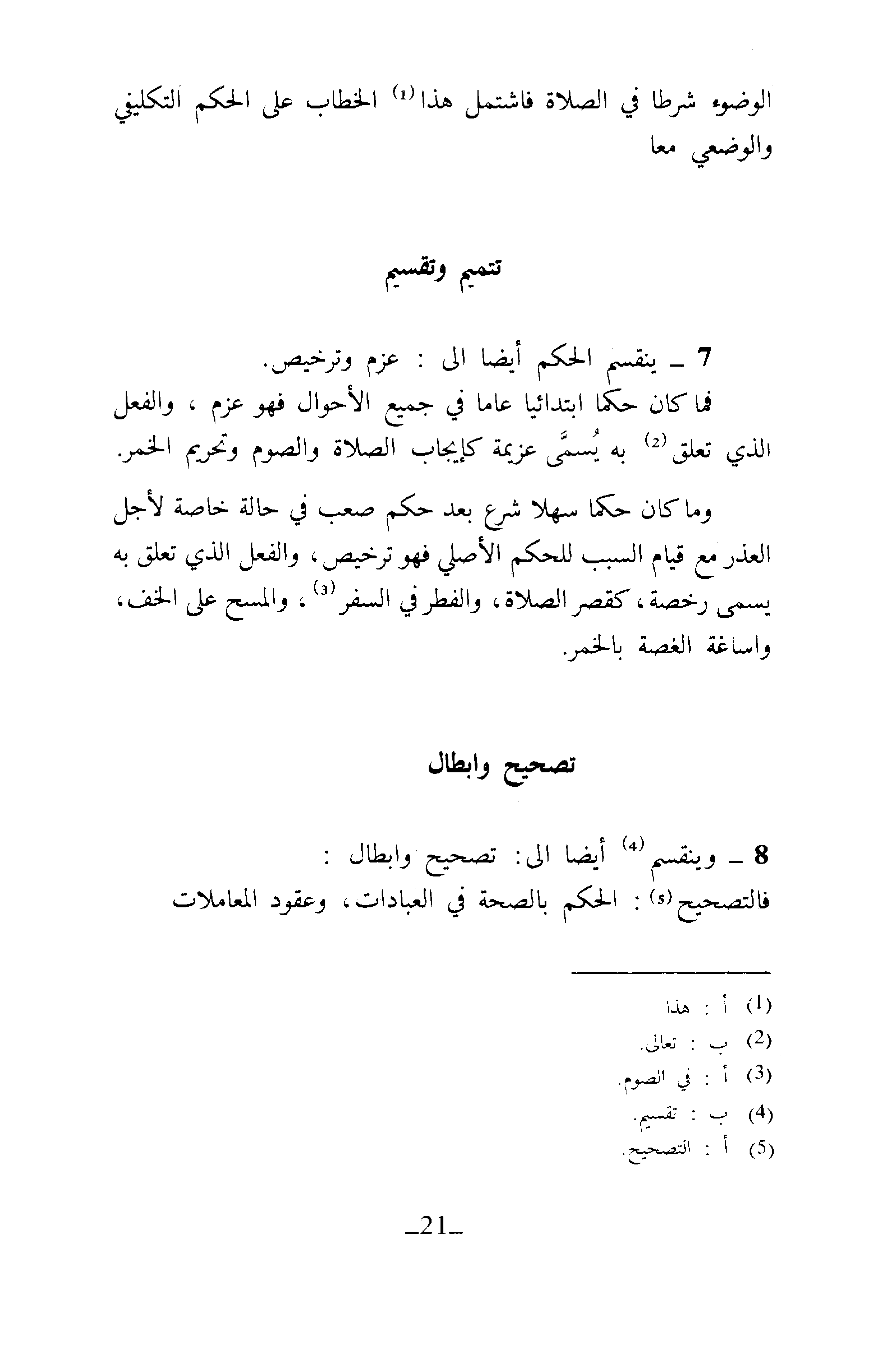 7 - يَنْقَسِمُ الْحُكْمُ أَيْضًا إِلَى: عَزْمٍ وَتَرْخِيصٍ.