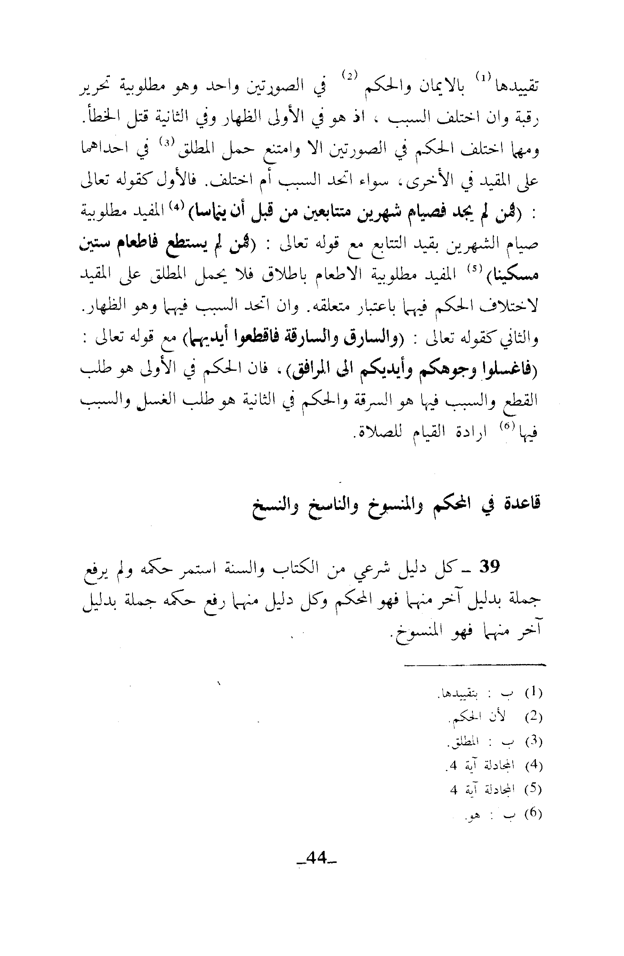 39 - كُلُّ دَلِيلٍ شَرْعِيٍّ مِنَ الْكِتَابِ وَالسُّنَّةِ اسْتَمَرَّ حُكْمُهُ وَلَمْ يُرْفَعْ جُمْلَةً بِدَلِيلٍ آخَرَ مِنْهُمَا فَهُوَ الْمُحْكَمُ، وَكُلُّ دَلِيلٍ مِنْهُمَا رُفِعَ حُكْمُهُ جُمْلَةً بِدَلِيلٍ آخَرَ مِنْهُمَا فَهُوَ الْمَنْسُوخُ.