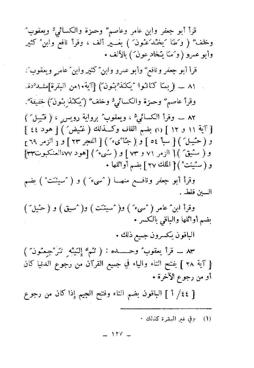 83 - قرأ يعقوب وحده: {ثُمَّ إِلَيْهِ تُرْجَعُونَ} [آية 28] بفتح التاء والياء في جميع القرآن من رجوع الدنيا كان أو من رجوع الآخرة.