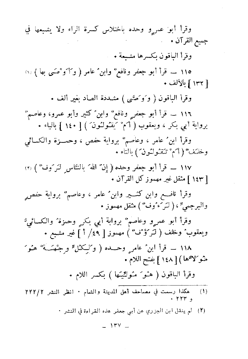 117 - قرأ أبو جعفر وحده {إِنَّ اللَّهَ بِالنَّاسِ لَرَءُوفٌ} [143] مثقل غير مهموز كل القرآن.