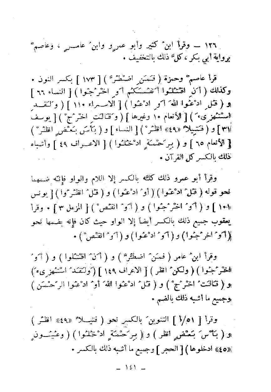 126 - وقرأ ابن كثير وأبو عمرو وابن عامر، وعاصم برواية أبي بكر، كل ذلك بالتخفيف.