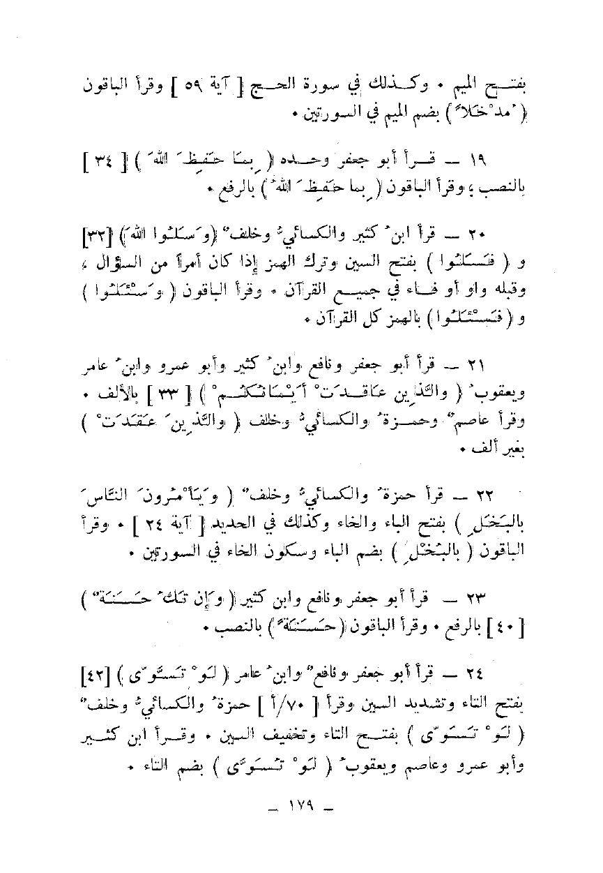 22 - قرأ حمزة والكسائي وخلف {وَيَأْمُرُونَ النَّاسَ بِالْبُخْلِ} بفتح الباء والخاء وكذلك في الحديد [آية 24]. وقرأ الباقون {بالبخل} بضم الباء وسكون الخاء في السورتين.