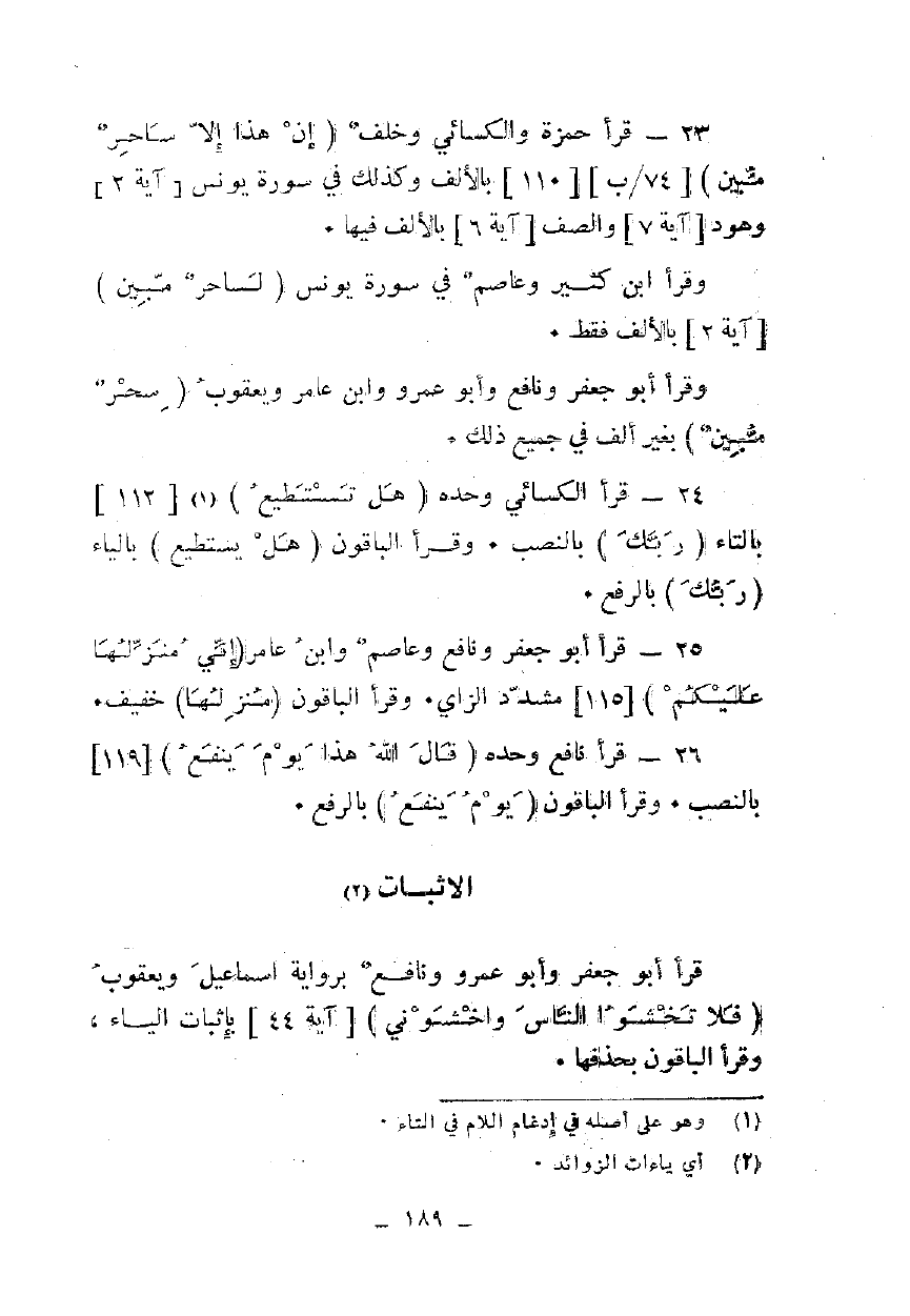 23 - قرأ حمزة والكسائي وخلف {إِنْ هَذَا إِلَّا سِحْرٌ مُبِينٌ} [110] بالألف وكذلك في سورة يونس [آية 2] وهود [آية 7] والصف [آية 6] بالألف فيها.