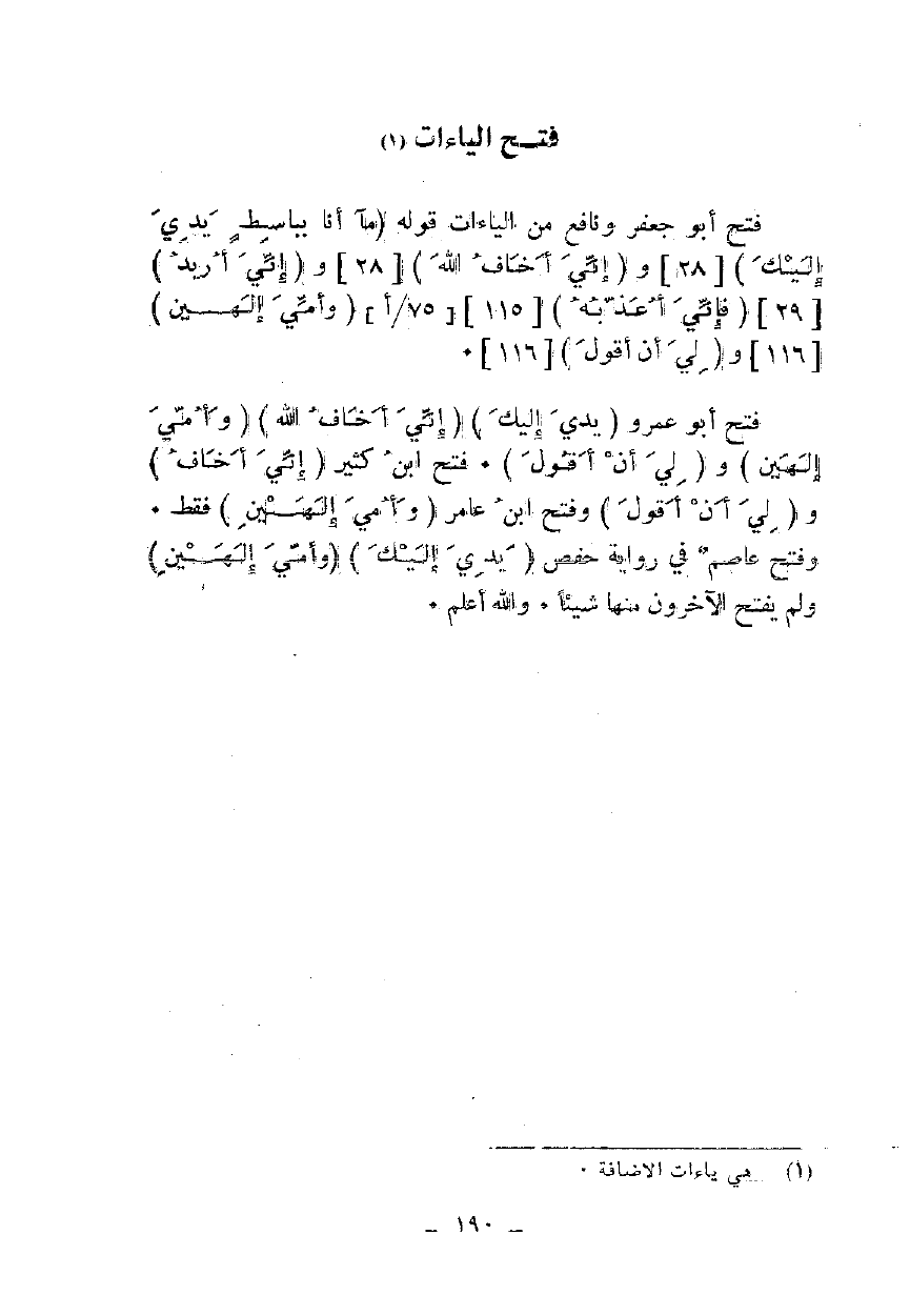 فتح أبو عمرو {يَدِيَ إِلَيْكَ} {إِنِّي أَخَافُ اللَّهَ} {وَأُمِّيَ إِلَهَيْنِ} و {لِي أَنْ أَقُولَ}. فتح ابن كثير {إِنِّي أَخَافُ} و {لِي أَنْ أَقُولَ} وفتح ابن عامر {وَأُمِّيَ إِلَهَيْنِ} فقط. وفتح عاصم في رواية حفص {يَدِيَ إِلَيْكَ} {وَأُمِّيَ إِلَهَيْنِ} ولم يفتح الآخرون منها شيئا. والله أعلم.