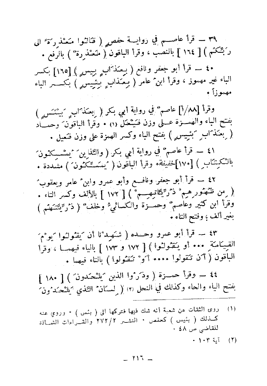 39 - قرأ عاصم في رواية حفص {قَالُوا مَعْذِرَةً إِلَى رَبِّكُمْ} [164] بالنصب، وقرأ الباقون {مَعْذِرَةً} بالرفع.