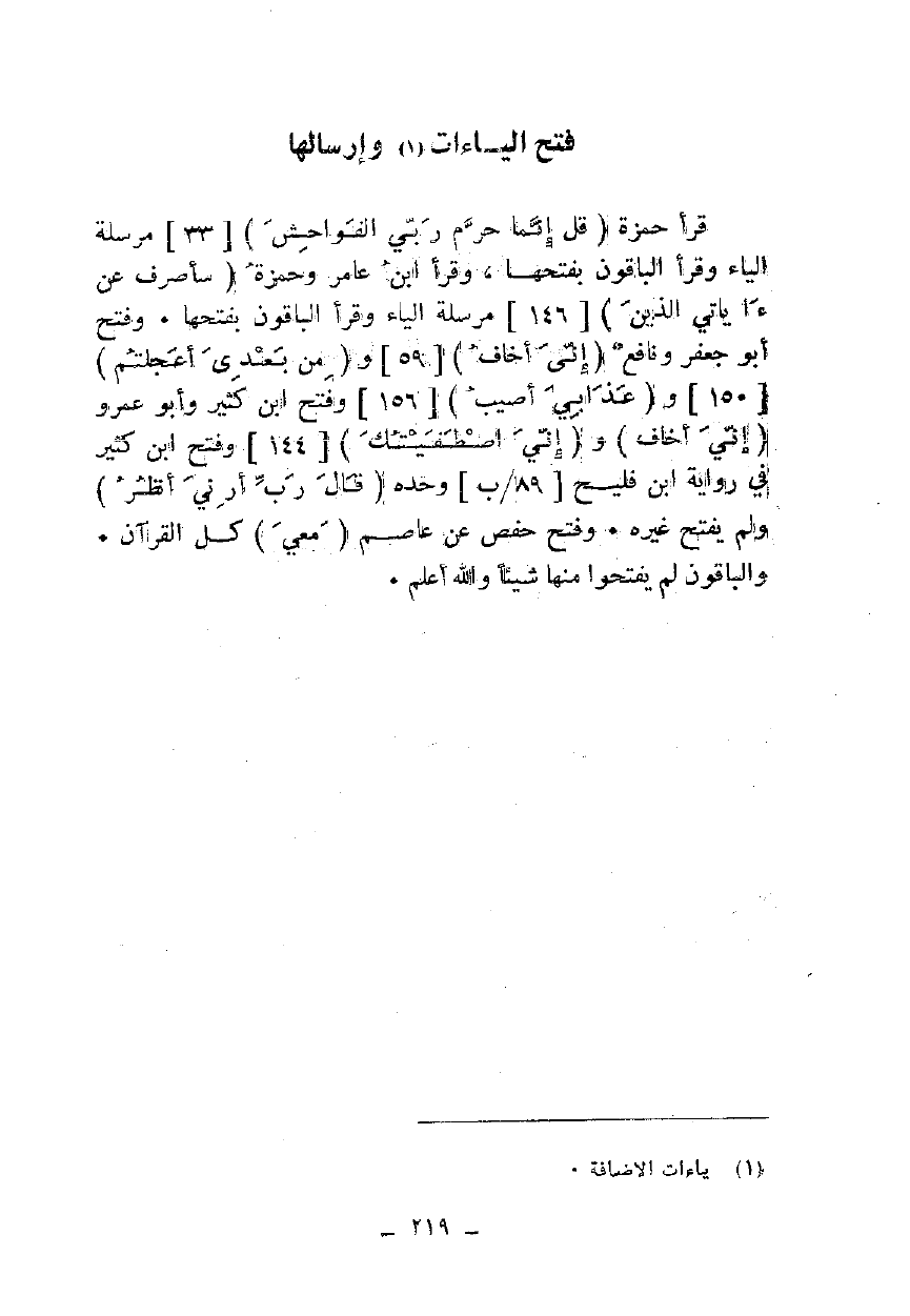 قرأ حمزة {قُلْ إِنَّمَا حَرَّمَ رَبِّيَ الْفَوَاحِشَ} [33] مرسلة الياء وقرأ الباقون بفتحها، وقرأ ابن عامر وحمزة {سَأَصْرِفُ عَنْ آيَاتِيَ الَّذِينَ} [146] مرسلة الياء وقرأ الباقون بفتحها. وفتح أبو جعفر ونافع {إِنِّي أَخَافُ} [59] و {مِنْ بَعْدِي أَعَجِلْتُمْ} [150] و {عَذَابِي أُصِيبُ} [156] وفتح ابن كثير وأبو عمرو {إِنِّي أَخَافُ} و {إِنِّي اصْطَفَيْتُكَ} [144] وفتح ابن كثير في رواية ابن فليح وحده {قَالَ رَبِّ أَرِنِي أَنْظُرْ} ولم يفتح غيره. وفتح حفص عن عاصم {مَعِيَ} كل القرآن. والباقون لم يفتحوا منها شيئا والله أعلم. ََََََََََ