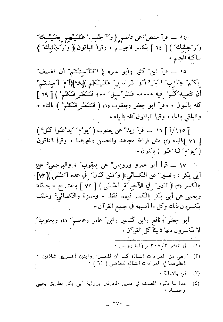 14 - قرأ حفص عن عاصم {وَأَجْلِبْ عَلَيْهِمْ بِخَيْلِكَ وَرَجِلِكَ} [64] بكسر الجيم. وقرأ الباقون {وَرَجِلِكَ} ساكنة الجيم.