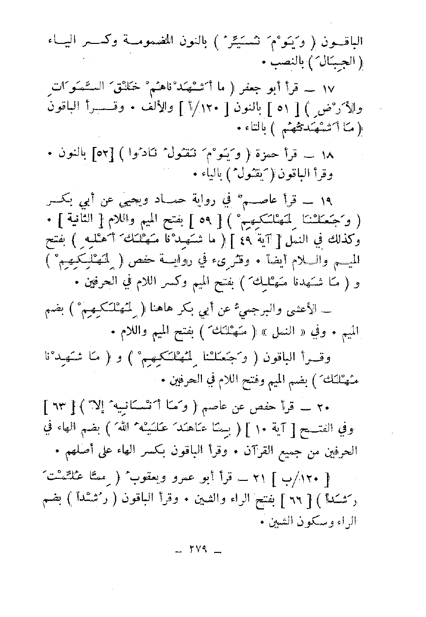 17 - قرأ أبو جعفر {مَا أَشْهَدْتُهُمْ خَلْقَ السَّمَاوَاتِ وَالْأَرْضِ} [51] بالنون والألف. وقرأ الباقون {مَا أَشْهَدْتُهُمْ} بالتاء.