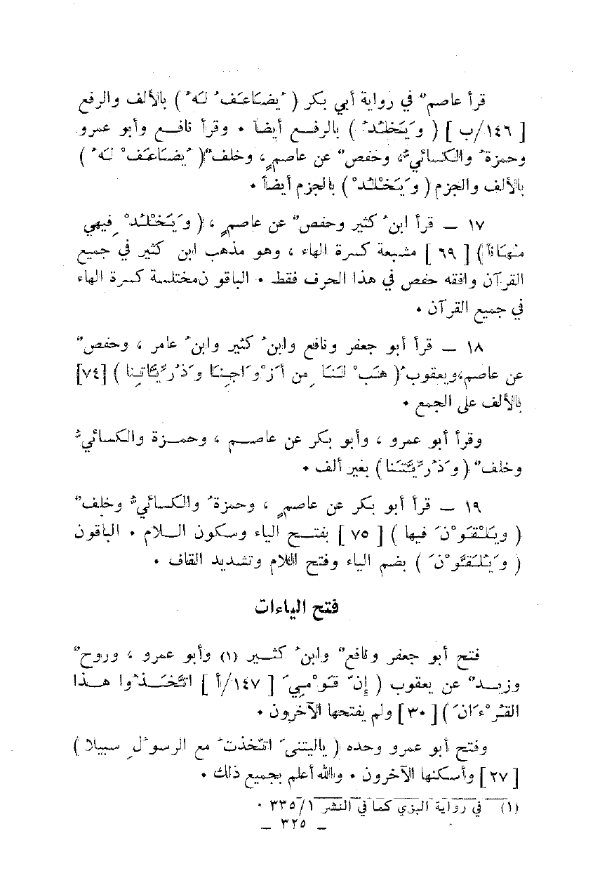 17 - قرأ ابن كثير وحفص عن عاصم، {وَيَخْلُدْ فِيهِ مُهَانًا} [69] مشبعة كسرة الهاء، وهو مذهب ابن كثير في جميع القرآن وافقه حفص في هذا الحرف فقط. الباقون مختلسة كسرة الهاء في جميع القرآن.