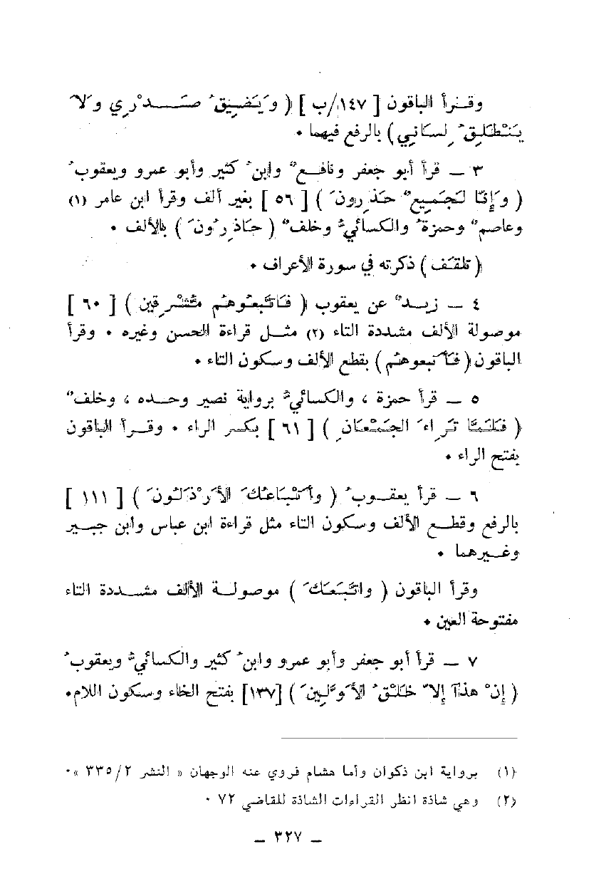 4 - زيد عن يعقوب {فَأَتْبَعُوهُمْ مُشْرِقِينَ} [60] موصولة الألف مشددة التاء مثل قراءة الحسن وغيره. وقرأ الباقون {فَأَتْبَعُوهُمْ} بقطع الألف وسكون التاء.