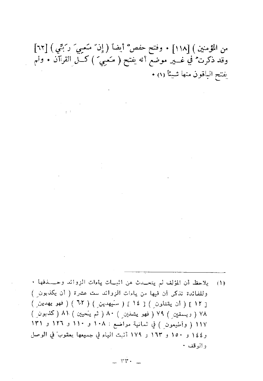 مِنَ الْمُؤْمِنِينَ} [118]. وفتح حفص أيضا {إِنَّ مَعِيَ رَبِّي} [62] وقد ذكرت في غير موضع أنه يفتح {مَعِيَ} كل القرآن. ولم يفتح الباقون منها شيئا.