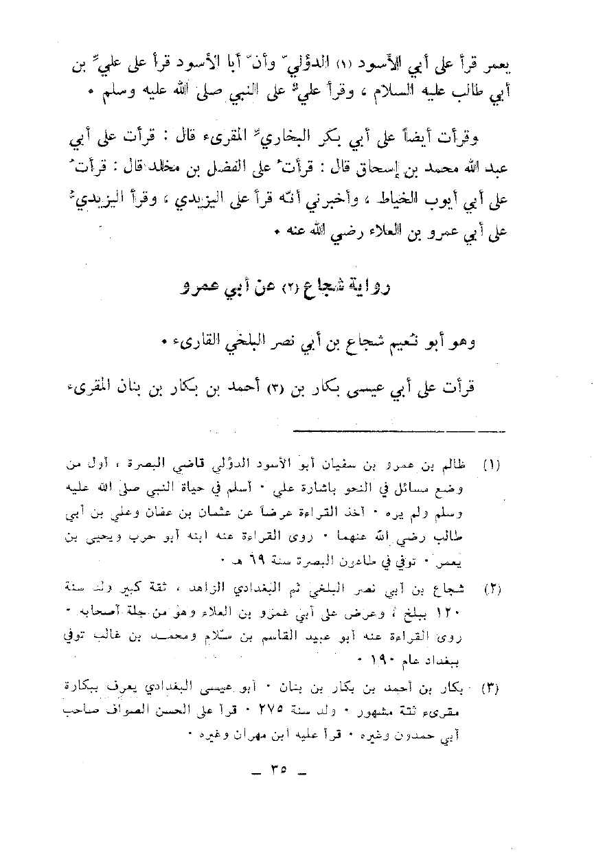 يعمر قرأ على أبي الأسود الدؤلي وأن أبا الأسود قرأ على علي بن أبي طالب عليه السلام، وقرأ علي على النبي صلى الله عليه وسلم.