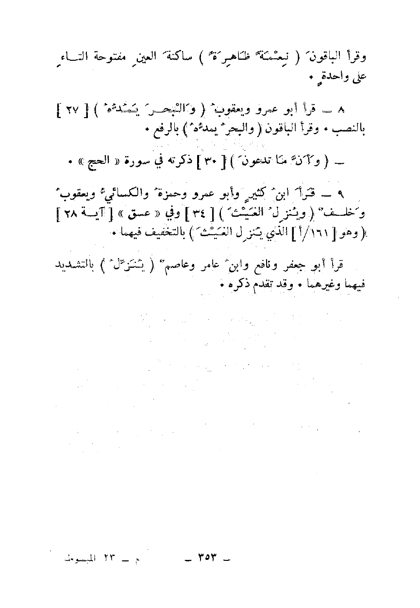 8 - قرأ أبو عمرو ويعقوب {وَالْبَحْرُ يَمُدُّهُ} [27] بالنصب. وقرأ الباقون {وَالْبَحْرُ يَمُدُّهُ} بالرفع.