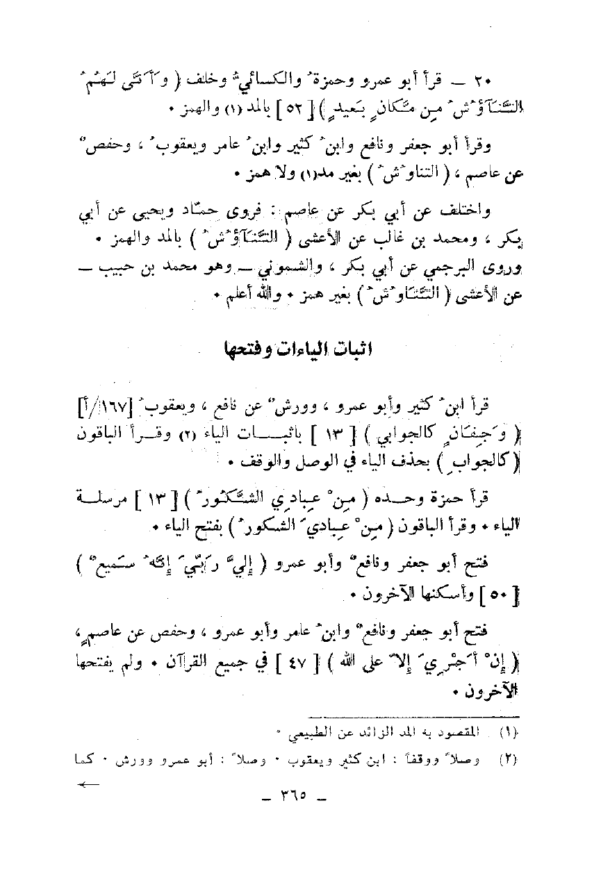 20 - قرأ أبو عمرو وحمزة والكسائي وخلف {وَأَنَّى لَهُمُ التَّنَاوُشُ مِنْ مَكَانٍ بَعِيدٍ} [52] بالمد والهمز.