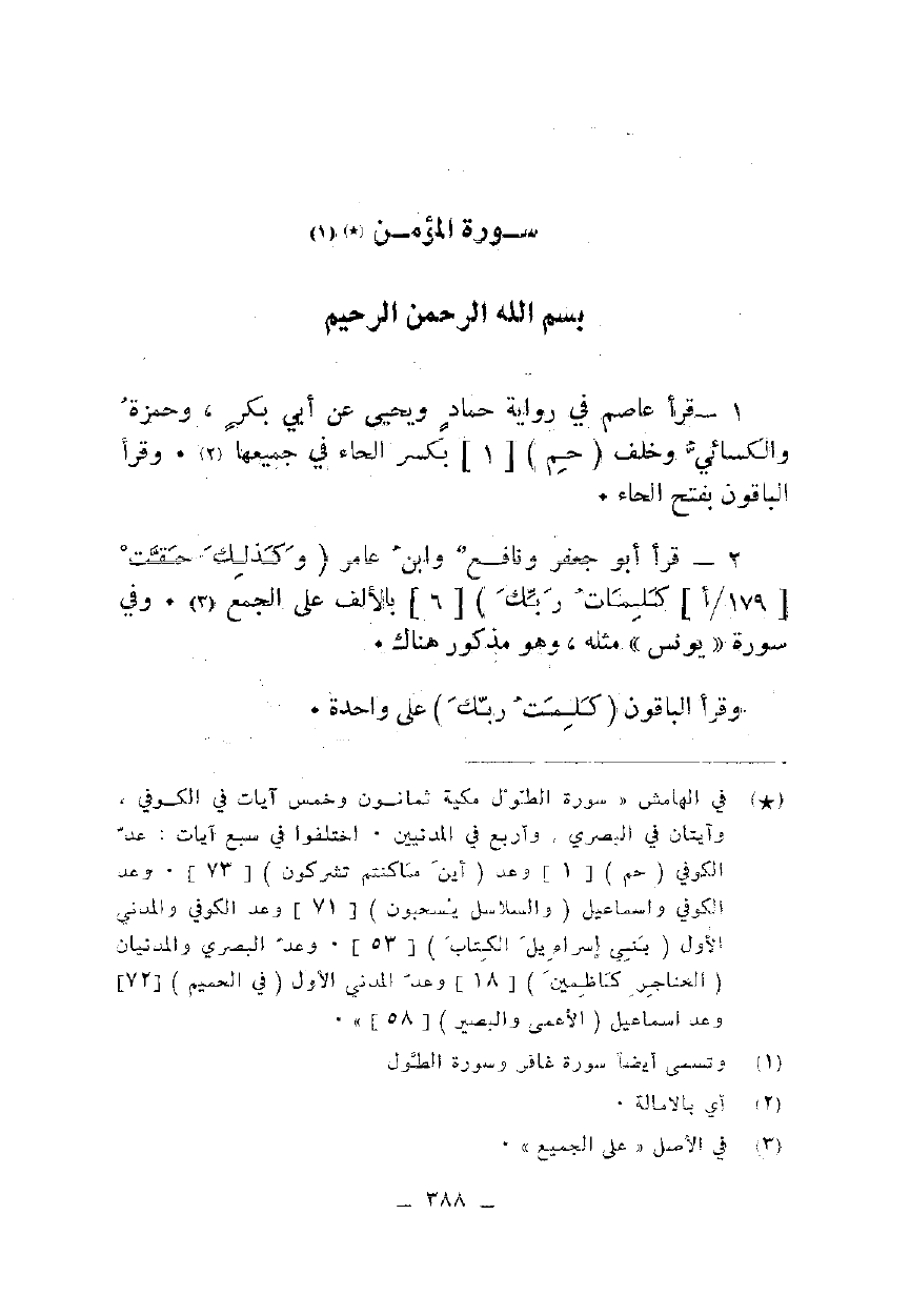 2 - قرأ أبو جعفر ونافع وابن عامر {وَكَذَلِكَ حَقَّتْ كَلِمَتُ رَبِّكَ} [6] بالألف على الجمع. وفي سورة "يونس" مثله، وهو مذكور هناك.