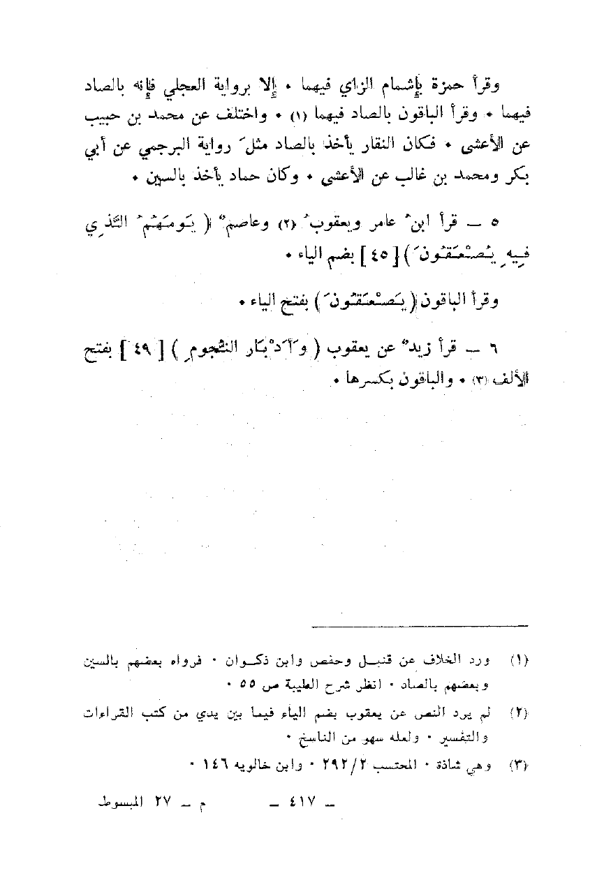 5 - قرأ ابن عامر ويعقو وعاصم {يَوْمَهُمُ الَّذِي فِيهِ يُصْعَقُونَ} [45] بضم الياء.