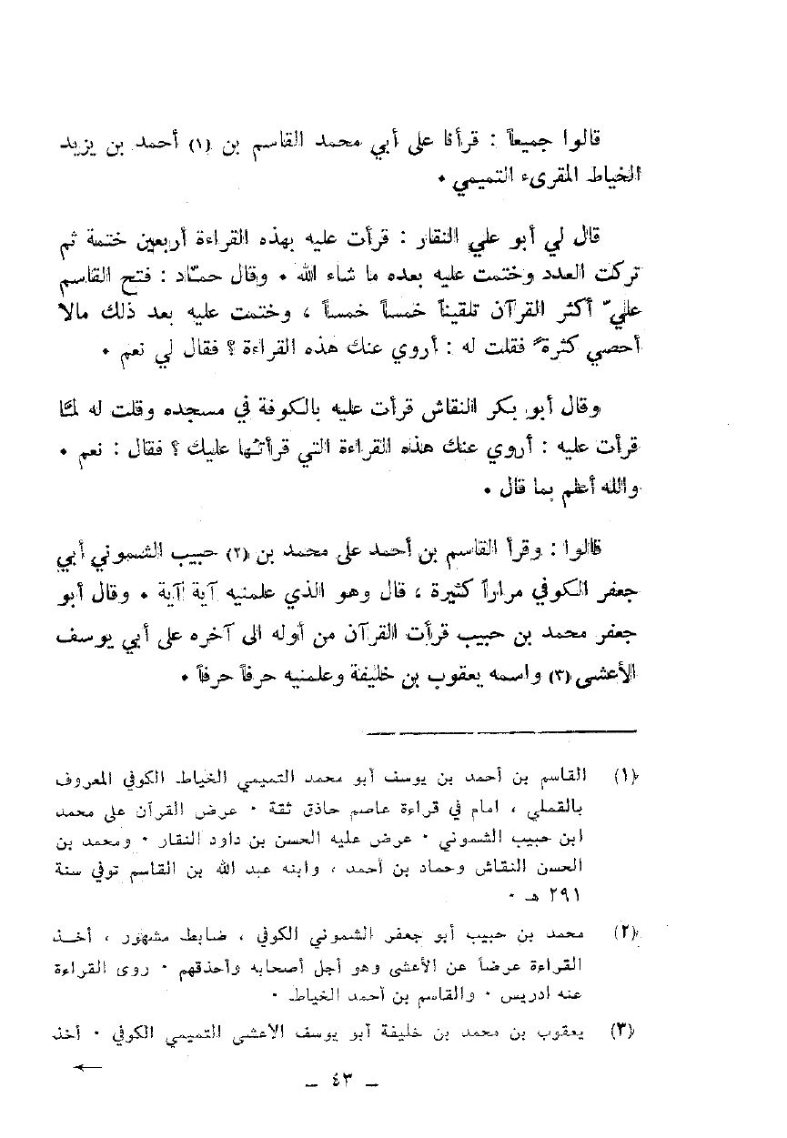 قالوا جميعا: قرأنا على أبي محمد القاسم بن أحمد بن يزيد الخياط المقرئ التميمي.