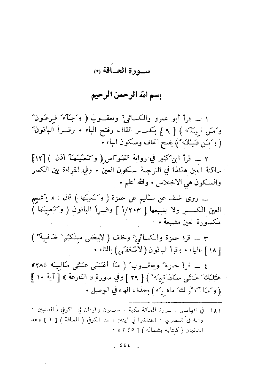 1 - قرأ أبو عمرو والكسائي ويعقوب {وَجَاءَ فِرْعَوْنُ وَمَنْ قَبْلَهُ} [9] بكسر القاف وفتح الباء. وقرأ الباقون {وَمَنْ قَبْلَهُ} بفتح القاف وسكون الباء.