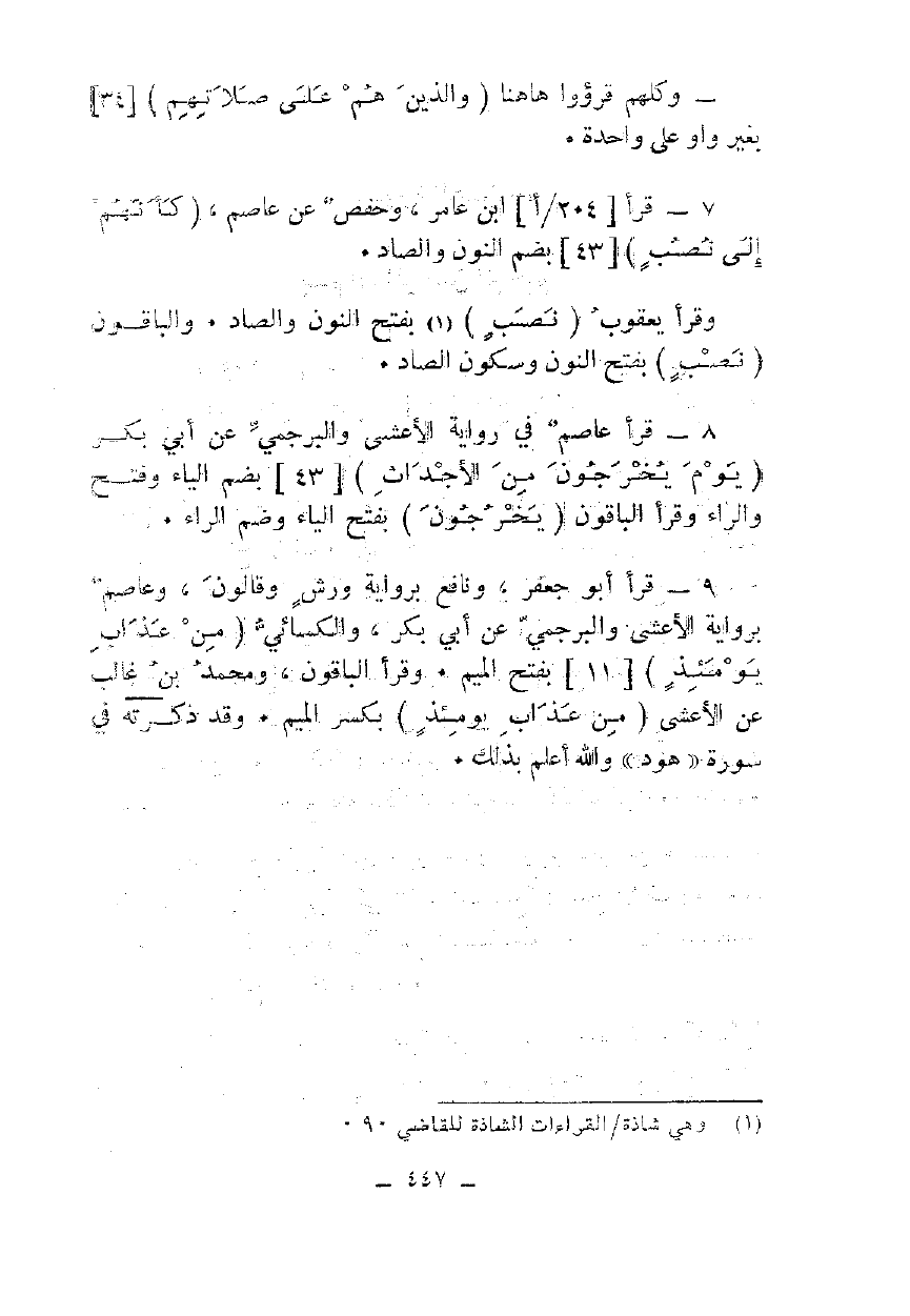 7 - قرأ ابن عامر، وحفص عن عاصم، {كَأَنَّهُمْ إِلَى نُصُبٍ} [43] بضم النون والصاد.