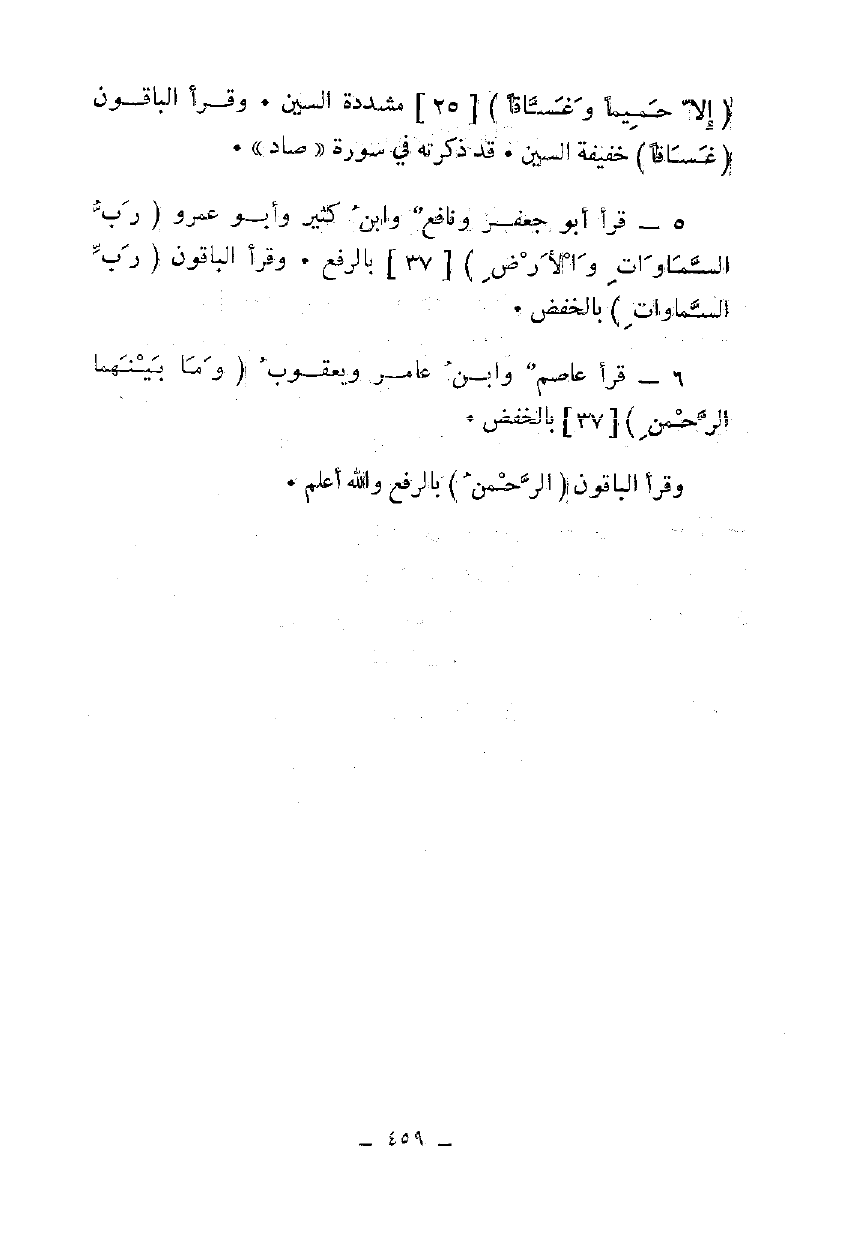 5 - قرأ أبو جعفر ونافع وابن كثير وأبو عمرو {رَبِّ السَّمَاوَاتِ وَالْأَرْضِ} [37] بالرفع. وقرأ الباقون {رَبِّ السَّمَاوَاتِ} بالخفض.