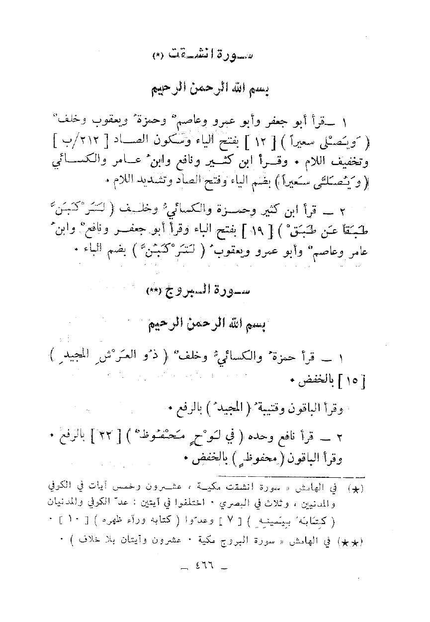 1 - قرأ أبو جعفر وأبو عمرو وعاصم وحمزة ويعقوب وخلف {وَيَصْلَى سَعِيرًا} [12] بفتح الياء وسكون الصاد وتخفيف اللام. وقرأ ابن كثير ونافع وابن عامر والكسائي {وَيَصْلَى سَعِيرًا} بضم الياء وفتح الصاد وتشديد اللام.