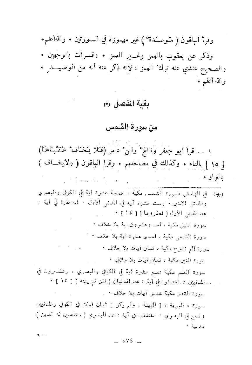 1 - قرأ أبو جعفر ونافع وابن عامر {وَلَا يَخَافُ عُقْبَاهَا} [15] بالفاء. وكذلك في مصاحفهم. وقرأ الباقون {وَلَا يَخَافُ} بالواو.