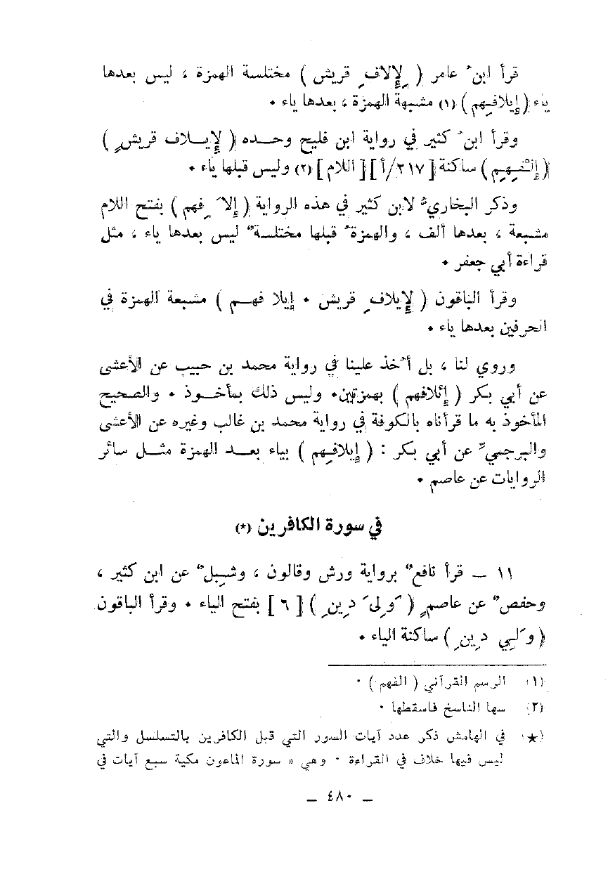 11 - قرأ نافع برواية ورش وقالون، وشبل عن ابن كثير، وحفص عن عاصم {وَلِيَ دِينِ} [6] بفتح الياء. وقرأ الباقون {وَلِيَ دِينِ} ساكنة الياء.