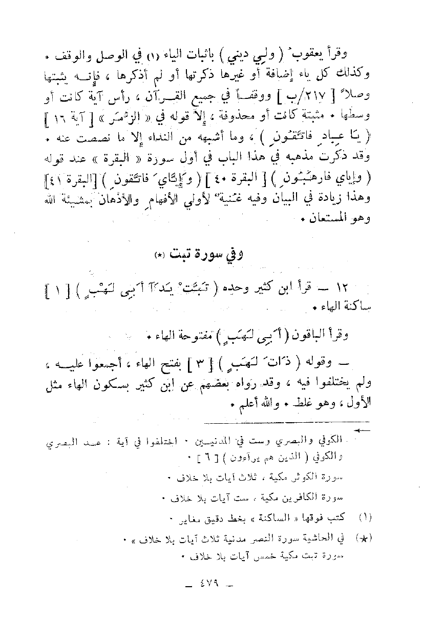 12 - قرأ ابن كثير وحده {تَبَّتْ يَدَا أَبِي لَهَبٍ} [1] ساكنة الهاء.