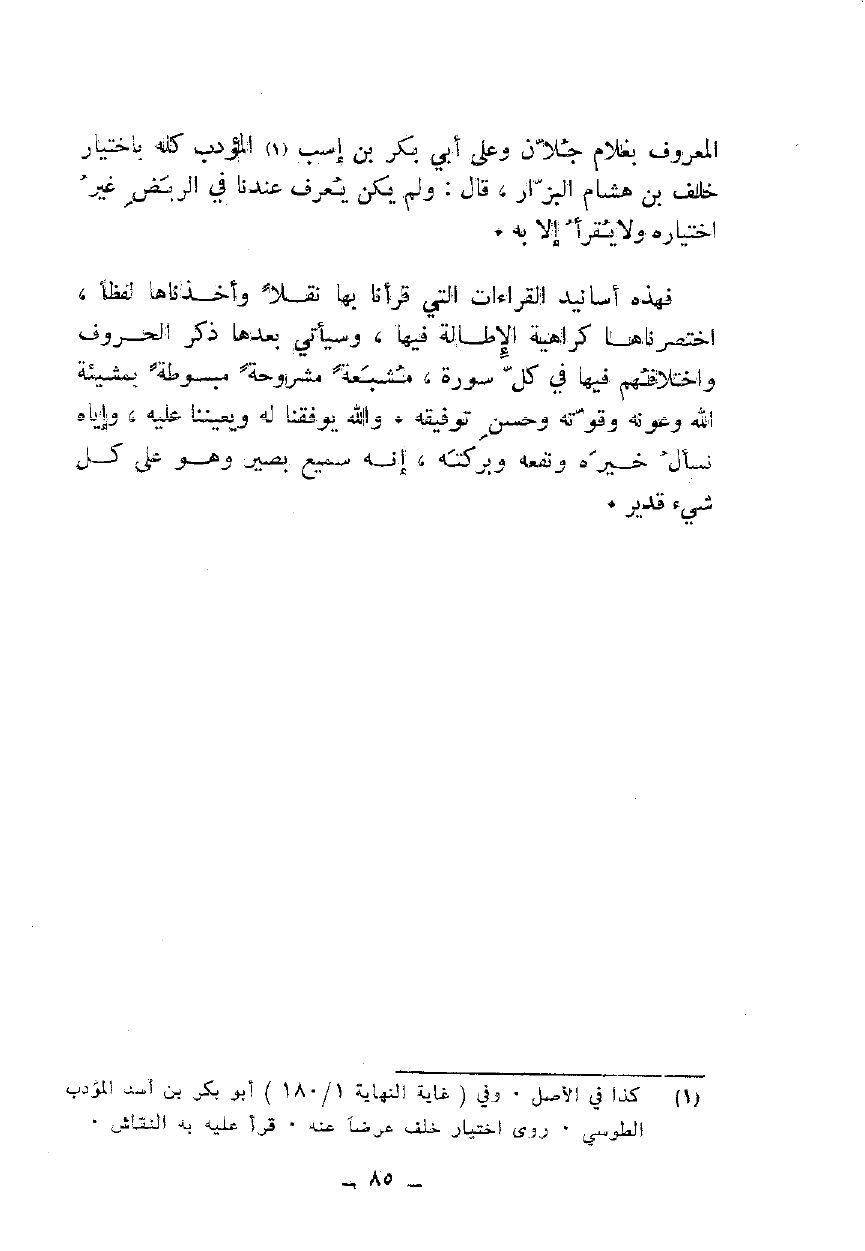 فهذه أسانيد القراءات التي قرأنا بها نقلا وأخذناها لفظاً، اختصرناها كراهية الإطالة فيها، وسيأتي بعدها ذكر الحروف واختلافهم فيها في كل سورة، مشبعة مشروحة مبسوطة بمشيئة الله وعونه وقوته وحسن توفيقه. والله يوفقنا له ويعيننا عليه، وإياه نسأل خيره ونفعه وبركته، إنه سميع بصير وهو على كل شيء قدير.