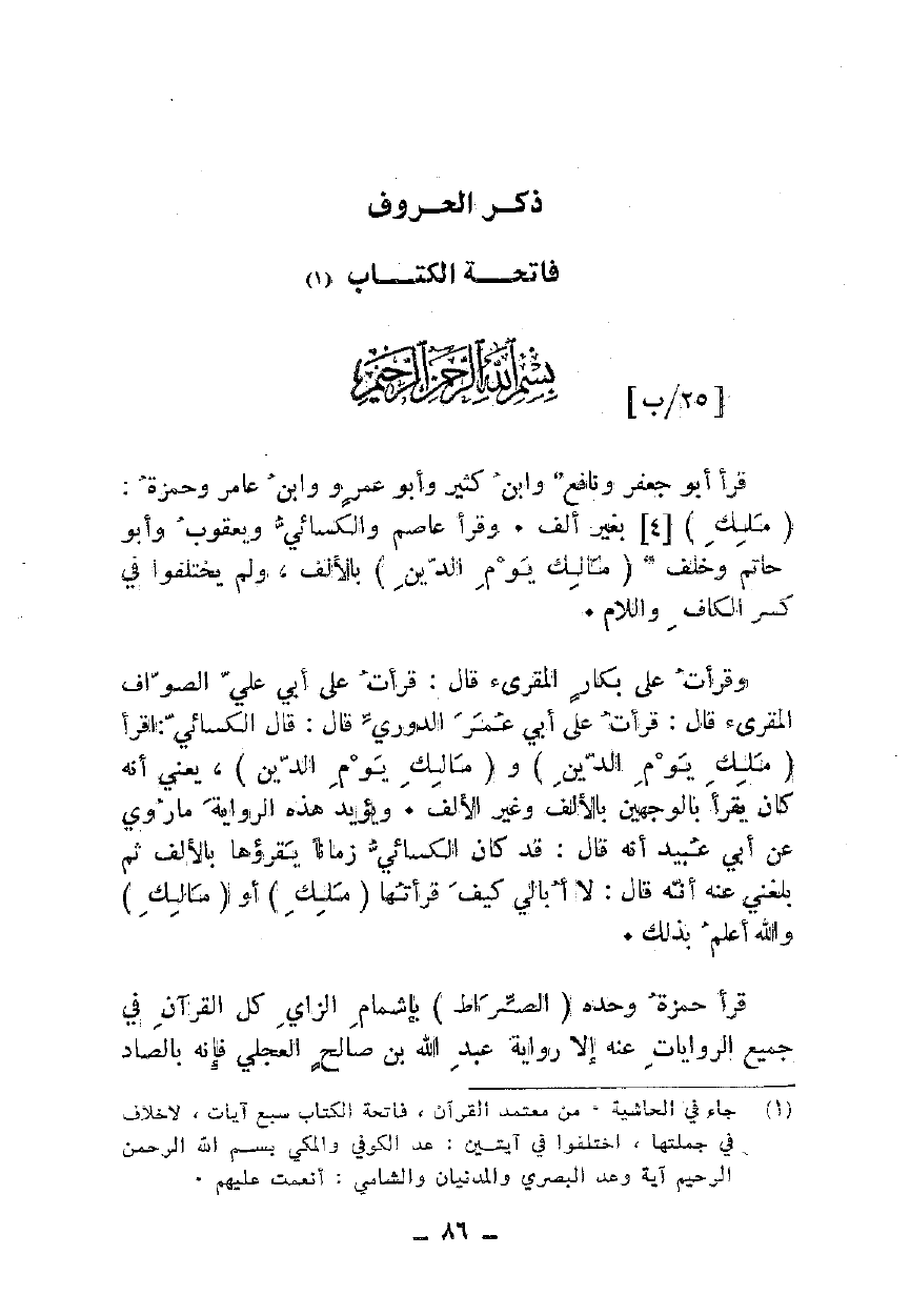 وقرأت على بكار المقرئ قال: قرأت على أبي علي الصواف المقرئ قال: قرأت على أبي عمر الدوري قال: قال الكسائي: اقرأ {مَلِكِ يَوْمِ الدِّينِ} و {مَالِكِ يَوْمِ الدِّينِ}، يعني أنه كان يقرأ بالوجهين بالألف وغير الألف. ويؤيد هذه الرواية ماروي عن أبي عبيد أنه قال: قد كان الكسائي زماناً يقرؤها بالألف ثم بلغني عنه أنه قال: لا أبالي كيف قرأتها {مَلِكِ} أو {مَالِكِ} والله أعلم بذلك.