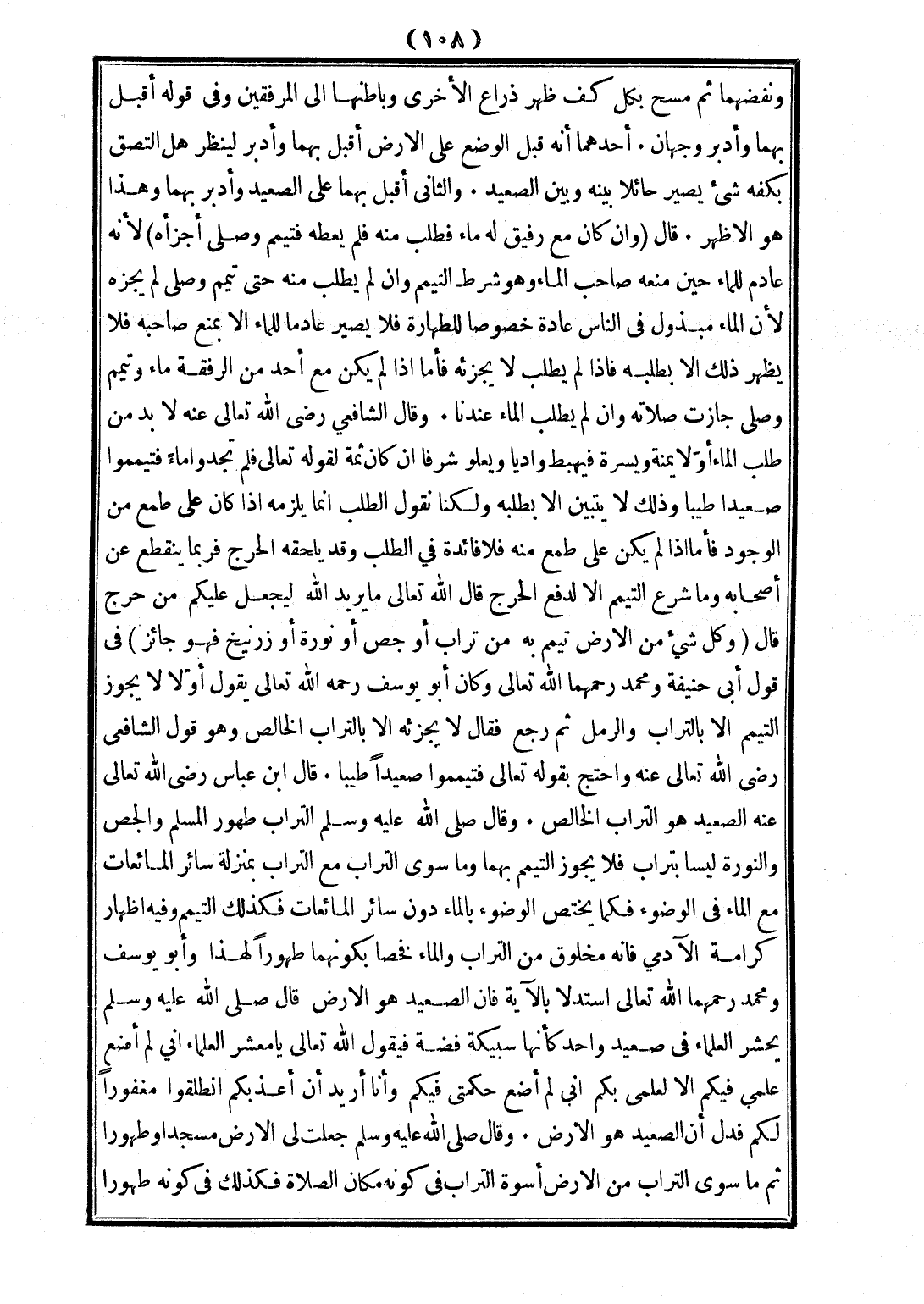 قَالَ (وَكُلُّ شَيْءٍ مِنْ الْأَرْضِ تَيَمَّمَ بِهِ مِنْ تُرَابٍ أَوْ جِصٍّ أَوْ نُورَةٍ أَوْ زِرْنِيخٍ فَهُوَ جَائِزٌ) فِي قَوْلِ أَبِي حَنِيفَةَ وَمُحَمَّدٍ رَحِمَهُمَا اللَّهُ تَعَالَى وَكَانَ أَبُو يُوسُفَ - رَحِمَهُ اللَّهُ تَعَالَى - يَقُولُ أَوَّلًا لَا يَجُوزُ التَّيَمُّمُ إلَّا بِالتُّرَابِ وَالرَّمْلِ ثُمَّ رَجَعَ فَقَالَ: لَا يُجْزِئُهُ إلَّا بِالتُّرَابِ الْخَالِصِ وَهُوَ قَوْلُ الشَّافِعِيِّ - رَضِيَ اللَّهُ تَعَالَى عَنْهُ - وَاحْتَجَّ بِقَوْلِهِ تَعَالَى فَتَيَمَّمُوا صَعِيدًا طَيِّبًا. قَالَ ابْنُ عَبَّاسٍ - رَضِيَ اللَّهُ تَعَالَى عَنْهُ -: الصَّعِيدُ هُوَ التُّرَابُ الْخَالِصُ وَقَالَ - صَلَّى اللَّهُ عَلَيْهِ وَسَلَّمَ - «التُّرَابُ طَهُورُ الْمُسْلِمِ وَالْجِصُّ وَالنُّورَةُ لَيْسَا بِتُرَابِ» فَلَا يَجُوزُ التَّيَمُّمُ بِهِمَا وَمَا سِوَى التُّرَابِ مَعَ التُّرَابِ بِمَنْزِلَةِ سَائِرِ الْمَائِعَاتِ مَعَ الْمَاءِ فِي الْوُضُوءِ فَكَمَا يَخْتَصُّ الْوُضُوءُ بِالْمَاءِ دُونَ سَائِرِ الْمَائِعَاتِ فَكَذَلِكَ التَّيَمُّمُ وَفِيهِ إظْهَارُ كَرَامَةٍ الْآدَمِيِّ فَإِنَّهُ مَخْلُوقٌ مِنْ التُّرَابِ وَالْمَاءِ فَخُصَّا بِكَوْنِهِمَا طَهُورًا لِهَذَا. وَأَبُو يُوسُفَ وَمُحَمَّدٌ رَحِمَهُمَا اللَّهُ تَعَالَى اسْتَدَلَّا بِالْآيَةِ فَإِنَّ الصَّعِيدَ هُوَ الْأَرْضُ قَالَ - صَلَّى اللَّهُ عَلَيْهِ وَسَلَّمَ - «يُحْشَرُ الْعُلَمَاءُ فِي صَعِيدٍ وَاحِدٍ كَأَنَّهَا سَبِيكَةُ فِضَّةٍ فَيَقُولُ اللَّهُ تَعَالَى يَا مَعْشَرَ الْعُلَمَاءِ إنِّي لَمْ أَضَعْ عِلْمِي فِيكُمْ إلَّا لِعِلْمِي بِكُمْ إنِّي لَمْ أَضَعْ حِكْمَتِي فِيكُمْ وَأَنَا أُرِيدُ أَنْ أُعَذِّبَكُمْ انْطَلِقُوا مَغْفُورًا» لَكُمْ فَدَلَّ أَنَّ الصَّعِيدَ هُوَ الْأَرْضُ وَقَالَ - صَلَّى اللَّهُ عَلَيْهِ وَسَلَّمَ - «جُعِلَتْ لِي الْأَرْضُ مَسْجِدًا وَطَهُورًا» ثُمَّ مَا سِوَى التُّرَابِ مِنْ الْأَرْضِ أُسْوَةُ التُّرَابِ فِي كَوْنِهِ مَكَانَ الصَّلَاةِ فَكَذَلِكَ فِي كَوْنِهِ طَهُورًا