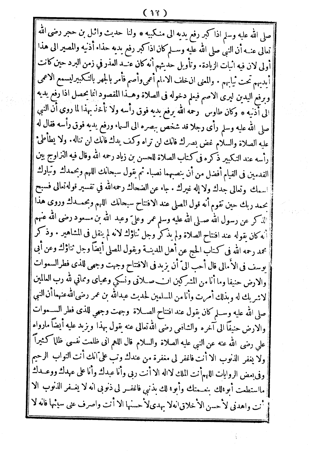 ثُمَّ يَقُولُ سُبْحَانَكَ اللَّهُمَّ وَبِحَمْدِكَ وَتَبَارَكَ اسْمُكَ وَتَعَالَى جَدُّكَ وَلَا إلَهَ غَيْرُكَ، جَاءَ عَنْ الضَّحَّاكِ - رَحِمَهُ اللَّهُ - فِي تَفْسِيرِ قَوْله تَعَالَى: {وَسَبِّحْ بِحَمْدِ رَبِّكَ حِينَ تَقُومُ} [الطور: 48] أَنَّهُ قَوْلُ الْمُصَلِّي عِنْدَ الِافْتِتَاحِ سُبْحَانَكَ اللَّهُمَّ وَبِحَمْدِكَ وَرَوَى هَذَا الذِّكْرَ عَنْ رَسُولِ اللَّهِ - صَلَّى اللَّهُ عَلَيْهِ وَسَلَّمَ - عُمَرُ وَعَلِيٌّ وَعَبْدُ اللَّهِ بْنُ مَسْعُودٍ - رَضِيَ اللَّهُ عَنْهُمْ -: «أَنَّهُ كَانَ يَقُولُهُ عِنْدَ افْتِتَاحِ الصَّلَاةِ»، وَلَمْ يَذْكُرْ وَجَلَّ ثَنَاؤُكَ؛ لِأَنَّهُ لَمْ يُنْقَلْ فِي الْمَشَاهِيرِ، وَذَكَرَ مُحَمَّدٌ - رَحِمَهُ اللَّهُ - فِي كِتَابِ الْحُجَّةِ عَنْ أَهْلِ الْمَدِينَةِ وَيَقُولُ الْمُصَلِّي أَيْضًا وَجَلَّ ثَنَاؤُكَ وَعَنْ أَبِي يُوسُفَ فِي الْأَمَالِي قَالَ أَحَبُّ إلَيَّ أَنْ يَزِيدَ فِي الِافْتِتَاحِ: «وَجَّهْتُ وَجْهِي لِلَّذِي فَطَرَ السَّمَوَاتِ وَالْأَرْضَ حَنِيفًا وَمَا أَنَا مِنْ الْمُشْرِكِينَ إنَّ صَلَاتِي وَنُسُكِي وَمَحْيَايَ وَمَمَاتِي لِلَّهِ رَبِّ الْعَالِمِينَ لَا شَرِيكَ لَهُ وَبِذَلِكَ أُمِرْتُ وَأَنَا مِنْ الْمُسْلِمِينَ» لِحَدِيثِ عَبْدِ اللَّهِ بْنِ عُمَرَ - رَضِيَ اللَّهُ عَنْهُمَا - «أَنَّ النَّبِيَّ - صَلَّى اللَّهُ عَلَيْهِ وَسَلَّمَ - كَانَ يَقُولُ عِنْدَ افْتِتَاحِ الصَّلَاةِ: وَجَّهْتُ وَجْهِي لِلَّذِي فَطَرَ السَّمَوَاتِ وَالْأَرْضَ حَنِيفًا»، إلَى آخِرِهِ وَالشَّافِعِيُّ - رَضِيَ اللَّهُ تَعَالَى عَنْهُ - يَقُولُ بِهَذَا وَيَزِيدُ عَلَيْهِ أَيْضًا مَا رَوَاهُ عَلِيٌّ - رَضِيَ اللَّهُ عَنْهُ - عَنْ النَّبِيِّ - عَلَيْهِ الصَّلَاةُ وَالسَّلَامُ - قَالَ: «اللَّهُمَّ إنِّي ظَلَمْتُ نَفْسِي ظُلْمًا كَثِيرًا وَلَا يَغْفِرُ الذُّنُوبَ إلَّا أَنْتَ فَاغْفِرْ لِي مَغْفِرَةً مِنْ عِنْدِكَ وَتُبْ عَلَيَّ إنَّكَ أَنْتَ التَّوَّابُ الرَّحِيمُ»، وَفِي بَعْضِ الرِّوَايَاتِ: «اللَّهُمَّ أَنْتَ الْمَلِكُ لَا إلَهَ إلَّا أَنْتَ رَبِّي وَأَنَا عَبْدُكَ وَأَنَا عَلَى عَهْدِكَ وَوَعْدِكَ مَا اسْتَطَعْتُ أَبُوءُ لَكَ بِنِعْمَتِكَ وَأَبُوءُ لَكَ بِذَنْبِي فَاغْفِرْ لِي ذُنُوبِي إنَّهُ لَا يَغْفِرُ الذُّنُوبَ إلَّا أَنْتَ وَاهْدِنِي لِأَحْسَنِ الْأَخْلَاقِ إنَّهُ لَا يَهْدِي لِأَحْسَنِهَا إلَّا أَنْتَ وَاصْرِفْ عَنِّي سَيِّئَهَا، فَإِنَّهُ لَا