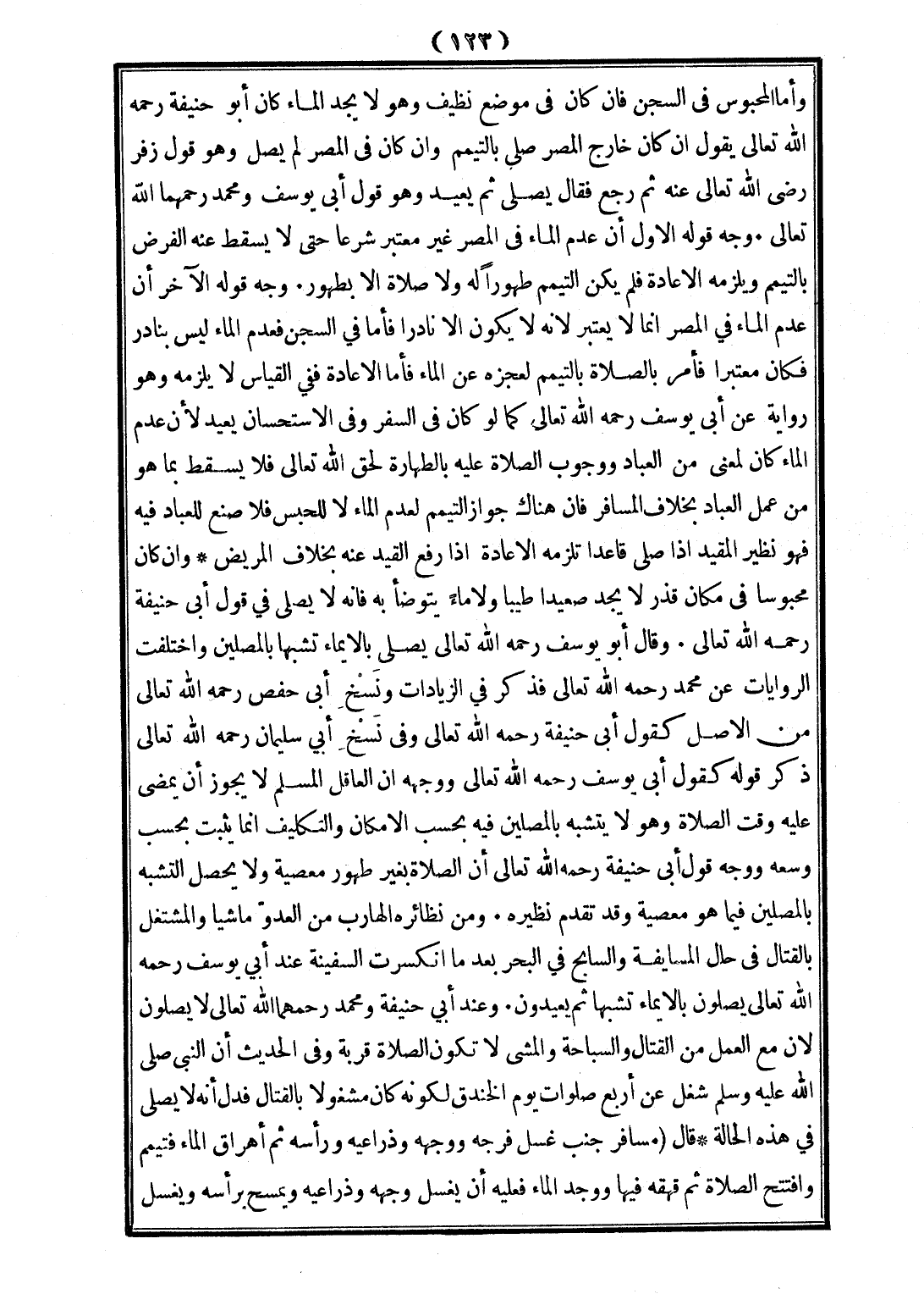 وَإِنْ كَانَ مَحْبُوسًا فِي مَكَان قَذِرٍ لَا يَجِدُ صَعِيدًا طَيِّبًا وَلَا مَاءً يَتَوَضَّأُ بِهِ فَإِنَّهُ لَا يُصَلِّي فِي قَوْلِ أَبِي حَنِيفَةَ - رَحِمَهُ اللَّهُ تَعَالَى - وَقَالَ أَبُو يُوسُفَ - رَحِمَهُ اللَّهُ تَعَالَى - يُصَلِّي بِالْإِيمَاءِ تَشَبُّهًا بِالْمُصَلِّينَ وَاخْتَلَفَتْ الرِّوَايَاتُ عَنْ مُحَمَّدٍ - رَحِمَهُ اللَّهُ تَعَالَى - فَذُكِرَ فِي الزِّيَادَاتِ وَنُسَخِ أَبِي حَفْصٍ - رَحِمَهُ اللَّهُ تَعَالَى - مِنْ الْأَصْلِ كَقَوْلِ أَبِي حَنِيفَةَ - رَحِمَهُ اللَّهُ تَعَالَى - وَفِي نُسَخِ أَبِي سُلَيْمَانَ - رَحِمَهُ اللَّهُ تَعَالَى - ذَكَرَ قَوْلَهُ كَقَوْلِ أَبِي يُوسُفَ - رَحِمَهُ اللَّهُ تَعَالَى - وَوَجْهُهُ أَنَّ الْعَاقِلَ الْمُسْلِمَ لَا يَجُوزُ أَنْ يَمْضِيَ عَلَيْهِ وَقْتُ الصَّلَاةِ وَهُوَ لَا يَتَشَبَّهُ بِالْمُصَلِّينَ فِيهِ بِحَسَبِ الْإِمْكَانِ وَالتَّكْلِيفِ إنَّمَا يَتَثَبَّتُ بِحَسَبِ وُسْعِهِ، وَوَجْهُ قَوْلِ أَبِي حَنِيفَةَ - رَحِمَهُ اللَّهُ تَعَالَى - أَنَّ الصَّلَاةَ بِغَيْرِ طَهُورٍ مَعْصِيَةٌ وَلَا يَحْصُلُ التَّشَبُّهُ بِالْمُصَلِّينَ فِيمَا هُوَ مَعْصِيَةٌ وَقَدْ تَقَدَّمَ نَظِيرُهُ. وَمِنْ نَظَائِرِهِ الْهَارِبُ مِنْ الْعَدُوِّ مَاشِيًا وَالْمُشْتَغِلُ بِالْقِتَالِ فِي حَالِ الْمُسَايَفَةِ وَالسَّابِحُ فِي الْبَحْرِ بَعْدَ مَا انْكَسَرَتْ السَّفِينَةُ عِنْدَ أَبِي يُوسُفَ - رَحِمَهُ اللَّهُ تَعَالَى - يُصَلُّونَ بِالْإِيمَاءِ تَشَبُّهًا ثُمَّ يُعِيدُونَ. وَعِنْدَ أَبِي حَنِيفَةَ وَمُحَمَّدٍ رَحِمَهُمَا اللَّهُ تَعَالَى لَا يُصَلُّونَ؛ لِأَنَّ مَعَ الْعَمَلِ مِنْ الْقِتَالِ وَالسِّبَاحَةِ وَالْمَشْيِ لَا تَكُونُ الصَّلَاةُ قُرْبَةٌ وَفِي الْحَدِيثِ «أَنَّ النَّبِيَّ - صَلَّى اللَّهُ عَلَيْهِ وَسَلَّمَ - شُغِلَ عَنْ أَرْبَعِ صَلَوَاتٍ يَوْمَ الْخَنْدَقِ» لِكَوْنِهِ كَانَ مَشْغُولًا بِالْقِتَالِ فَدَلَّ أَنَّهُ لَا يُصَلِّي فِي هَذِهِ الْحَالَةِ.