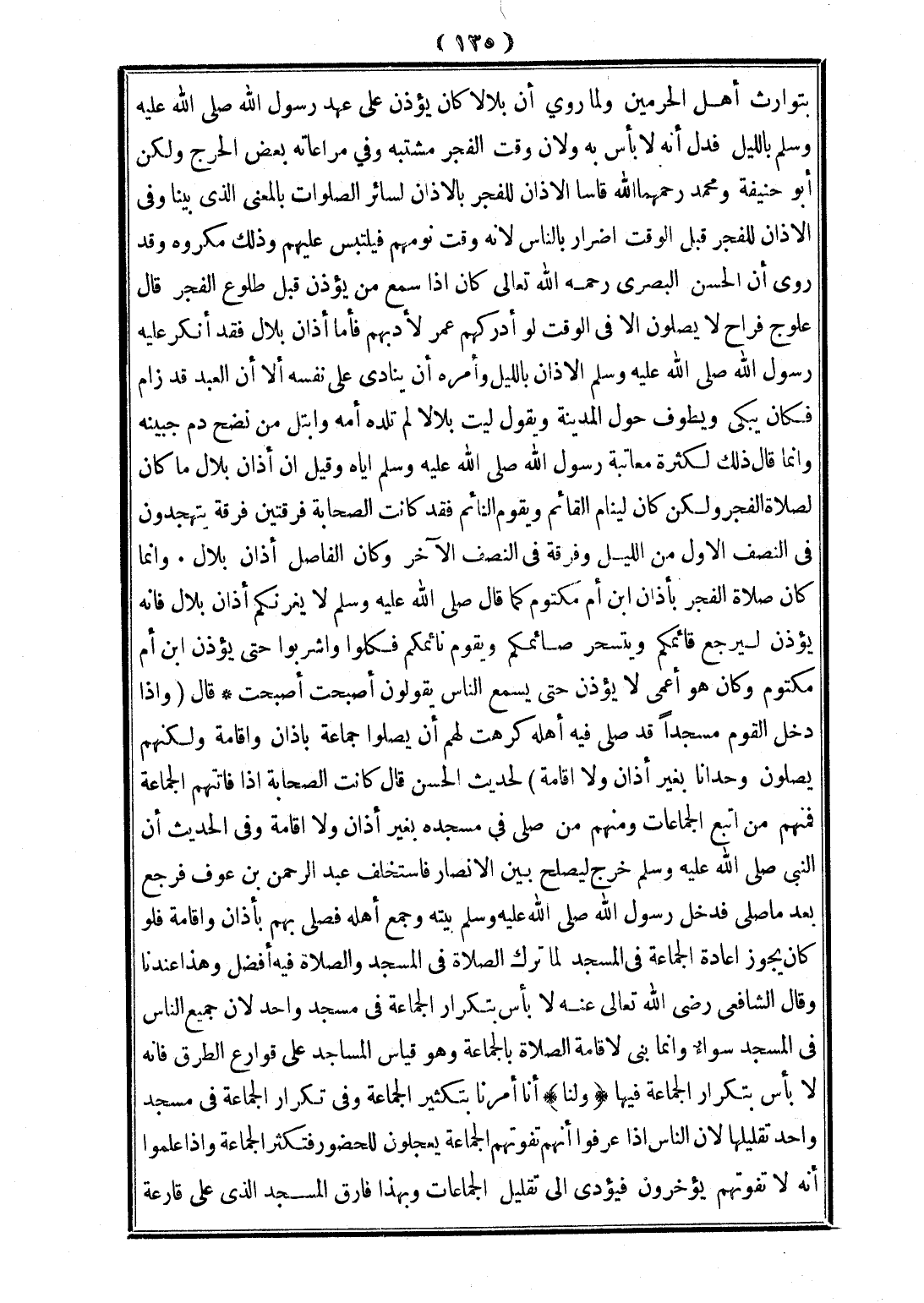 وَقَدْ رُوِيَ أَنَّ الْحَسَنَ الْبَصْرِيَّ - رَحِمَهُ اللَّهُ تَعَالَى - كَانَ إذَا سَمِعَ مَنْ يُؤَذِّنُ قَبْلَ طُلُوعِ الْفَجْرِ قَالَ عُلُوجُ فَرَاحٍ لَا يُصَلُّونَ إلَّا فِي الْوَقْتِ، لَوْ أَدْرَكَهُمْ عُمَرُ لَأَدَّبَهُمْ فَأَمَّا أَذَانُ بِلَالٍ فَقَدْ أَنْكَرَ عَلَيْهِ رَسُولُ اللَّهِ - صَلَّى اللَّهُ عَلَيْهِ وَسَلَّمَ - الْأَذَانَ بِاللَّيْلِ وَأَمَرَهُ أَنْ يُنَادِيَ عَلَى نَفْسِهِ أَلَا إنَّ الْعَبْدَ قَدْ زَامَ فَكَانَ يَبْكِي وَيَطُوفُ حَوْلَ الْمَدِينَةِ وَيَقُولُ لَيْتَ بِلَالًا لَمْ تَلِدْهُ أُمُّهُ وَابْتَلَّ مِنْ نَضْحِ دَمِ جَبِينِهِ وَإِنَّمَا قَالَ ذَلِكَ لِكَثْرَةِ مُعَاتَبَةِ رَسُولِ اللَّهِ - صَلَّى اللَّهُ عَلَيْهِ وَسَلَّمَ - إيَّاهُ، وَقِيلَ إنَّ أَذَانَ بِلَالٍ مَا كَانَ لِصَلَاةِ الْفَجْرِ وَلَكِنْ كَانَ لِيَنَامَ الْقَائِمُ وَيَقُومَ النَّائِمُ فَقَدْ كَانَتْ الصَّحَابَةُ فِرْقَتَيْنِ فِرْقَةً يَتَهَجَّدُونَ فِي النِّصْفِ الْأَوَّلِ مِنْ اللَّيْلِ وَفِرْقَةً فِي النِّصْفِ الْآخَرِ، وَكَانَ الْفَاصِلُ أَذَانَ بِلَالٍ.