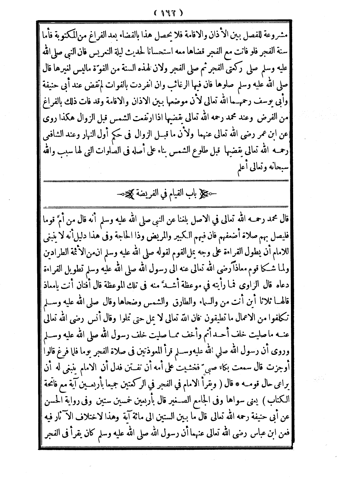 قَالَ مُحَمَّدٌ - رَحِمَهُ اللَّهُ تَعَالَى - فِي الْأَصْلِ: «بَلَغَنَا عَنْ النَّبِيِّ - صَلَّى اللَّهُ عَلَيْهِ وَسَلَّمَ - أَنَّهُ قَالَ مَنْ أَمَّ قَوْمًا فَلْيُصَلِّ بِهِمْ صَلَاةَ أَضْعَفِهِمْ فَإِنَّ فِيهِمْ الْكَبِيرَ وَالْمَرِيضَ وَذَا الْحَاجَةِ» وَفِي هَذَا دَلِيلٌ أَنَّهُ لَا يَنْبَغِي لِلْإِمَامِ أَنْ يُطَوِّلَ الْقِرَاءَةَ عَلَى وَجْهٍ يَمَلُّ الْقَوْمُ لِقَوْلِهِ - صَلَّى اللَّهُ عَلَيْهِ وَسَلَّمَ - «إنَّ مِنْ الْأَئِمَّةِ الطَّرَّادِينَ» «وَلَمَّا شَكَا قَوْمٌ مُعَاذًا - رَضِيَ اللَّهُ تَعَالَى عَنْهُ - إلَى رَسُولِ اللَّهِ - صَلَّى اللَّهُ عَلَيْهِ وَسَلَّمَ - تَطْوِيلَ الْقِرَاءَةِ دَعَاهُ قَالَ الرَّاوِي: فَمَا رَأَيْته فِي مَوْعِظَةٍ أَشَدَّ مِنْهُ فِي تِلْكَ الْمَوْعِظَةِ. قَالَ: أَفَتَّانٌ أَنْتَ يَا مُعَاذُ قَالَهَا ثَلَاثًا أَيْنَ أَنْتَ مِنْ وَالسَّمَاءِ وَالطَّارِقِ وَالشَّمْسِ وَضُحَاهَا» وَقَالَ - صَلَّى اللَّهُ عَلَيْهِ وَسَلَّمَ - «تَكَلَّفُوا مِنْ الْأَعْمَالِ مَا تُطِيقُونَ فَإِنَّ اللَّهَ تَعَالَى لَا يَمَلُّ حَتَّى تَمَلُّوا» «وَقَالَ أَنَسٌ - رَضِيَ اللَّهُ تَعَالَى عَنْهُ - مَا صَلَّيْت خَلْفَ أَحَدٍ أَتَمَّ وَأَخَفَّ مِمَّا صَلَّيْت خَلْفَ رَسُولِ اللَّهِ - صَلَّى اللَّهُ عَلَيْهِ وَسَلَّمَ -» وَرُوِيَ «أَنَّ رَسُولَ اللَّهِ - صَلَّى اللَّهُ عَلَيْهِ وَسَلَّمَ - قَرَأَ الْمُعَوِّذَتَيْنِ فِي صَلَاةِ الْفَجْرِ يَوْمًا فَلَمَّا فَرَغَ قَالُوا أَوْجَزْتَ قَالَ سَمِعْتُ بُكَاءَ صَبِيٍّ فَخَشِيتُ عَلَى أُمِّهِ أَنْ تُفْتَنَ» فَدَلَّ أَنَّ الْإِمَامَ يَنْبَغِي لَهُ أَنْ يُرَاعِيَ حَالَ قَوْمِهِ