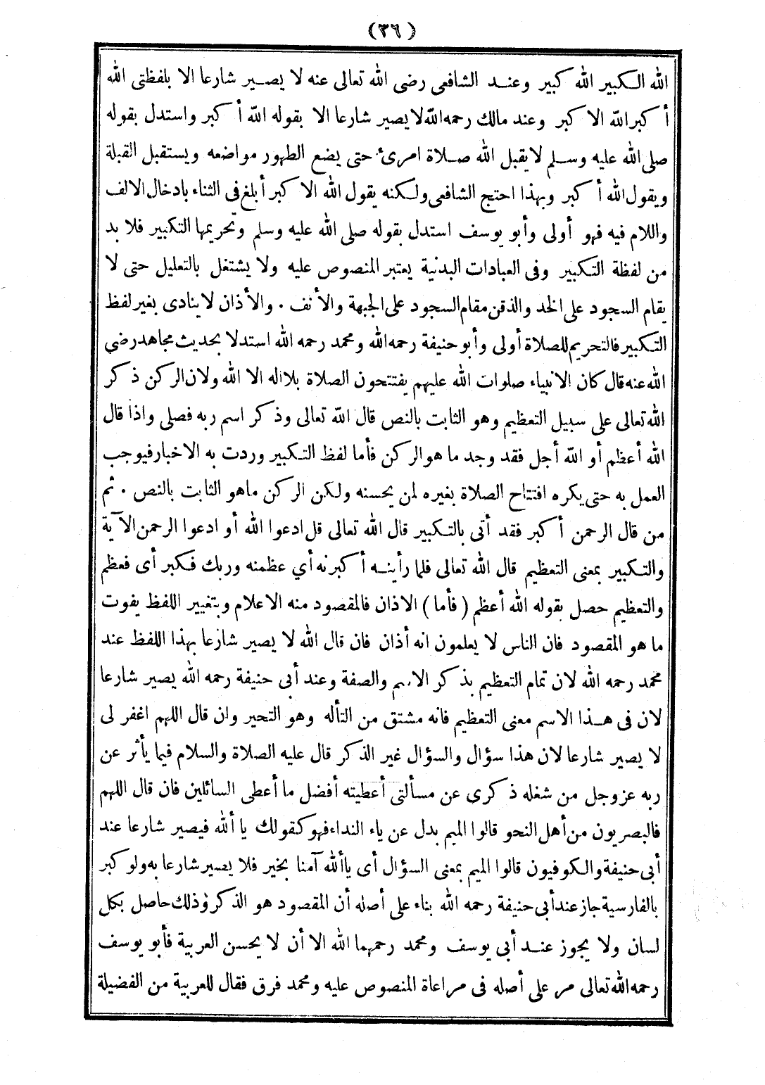 وَلَوْ كَبَّرَ بِالْفَارِسِيَّةِ جَازَ عِنْدَ أَبِي حَنِيفَةَ - رَحِمَهُ اللَّهُ - بِنَاءً عَلَى أَصْلِهِ أَنَّ الْمَقْصُودَ هُوَ الذِّكْرُ وَذَلِكَ حَاصِلٌ بِكُلِّ لِسَانٍ